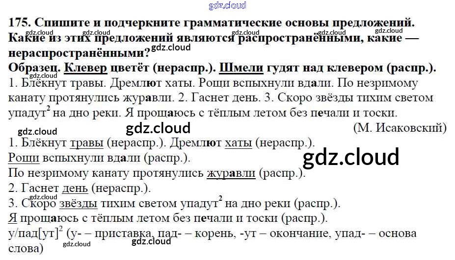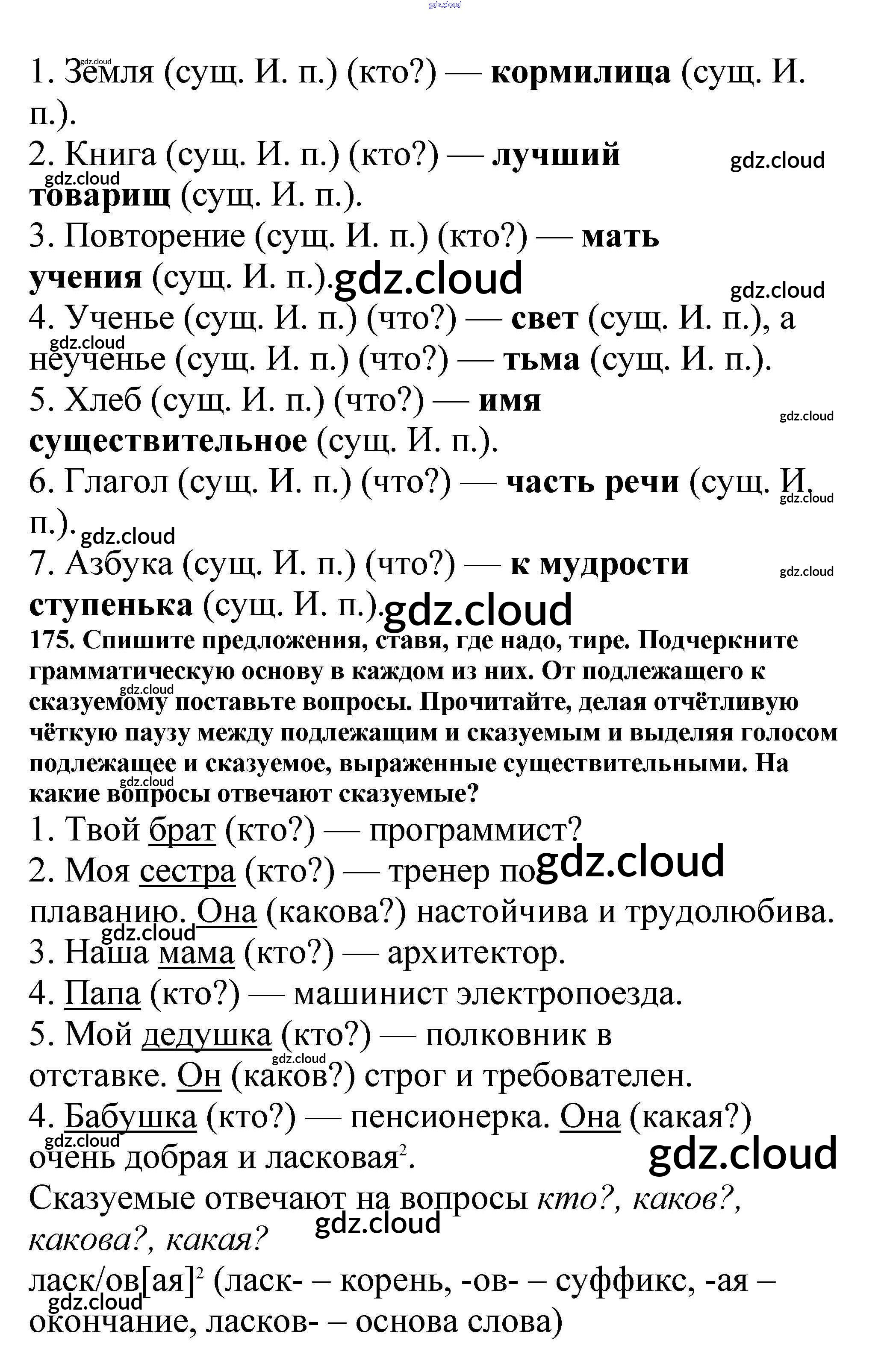 Ответ на задание 175 Учебник Русский язык за 5 (пятый) класс Баранов, Ладыженская, Тростенцова, Кулибаба, Григорян 2016, 2019 Часть 1, 2