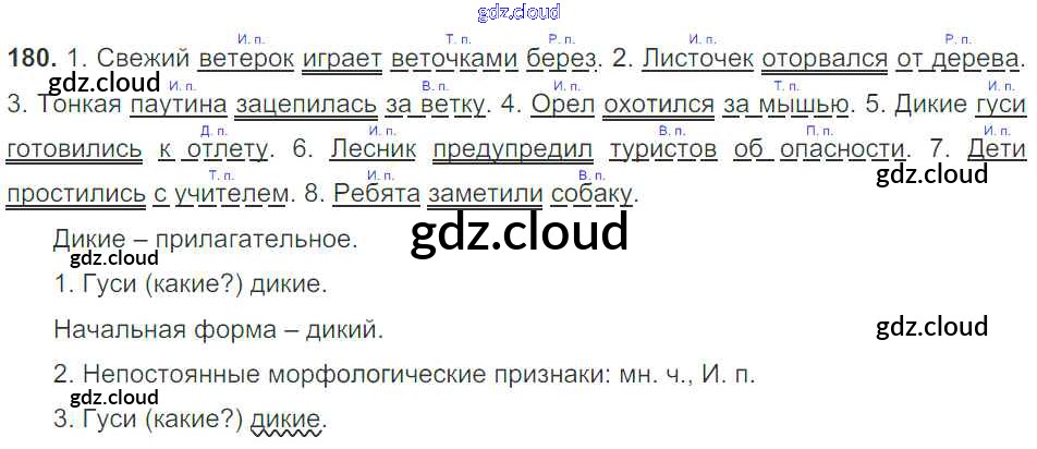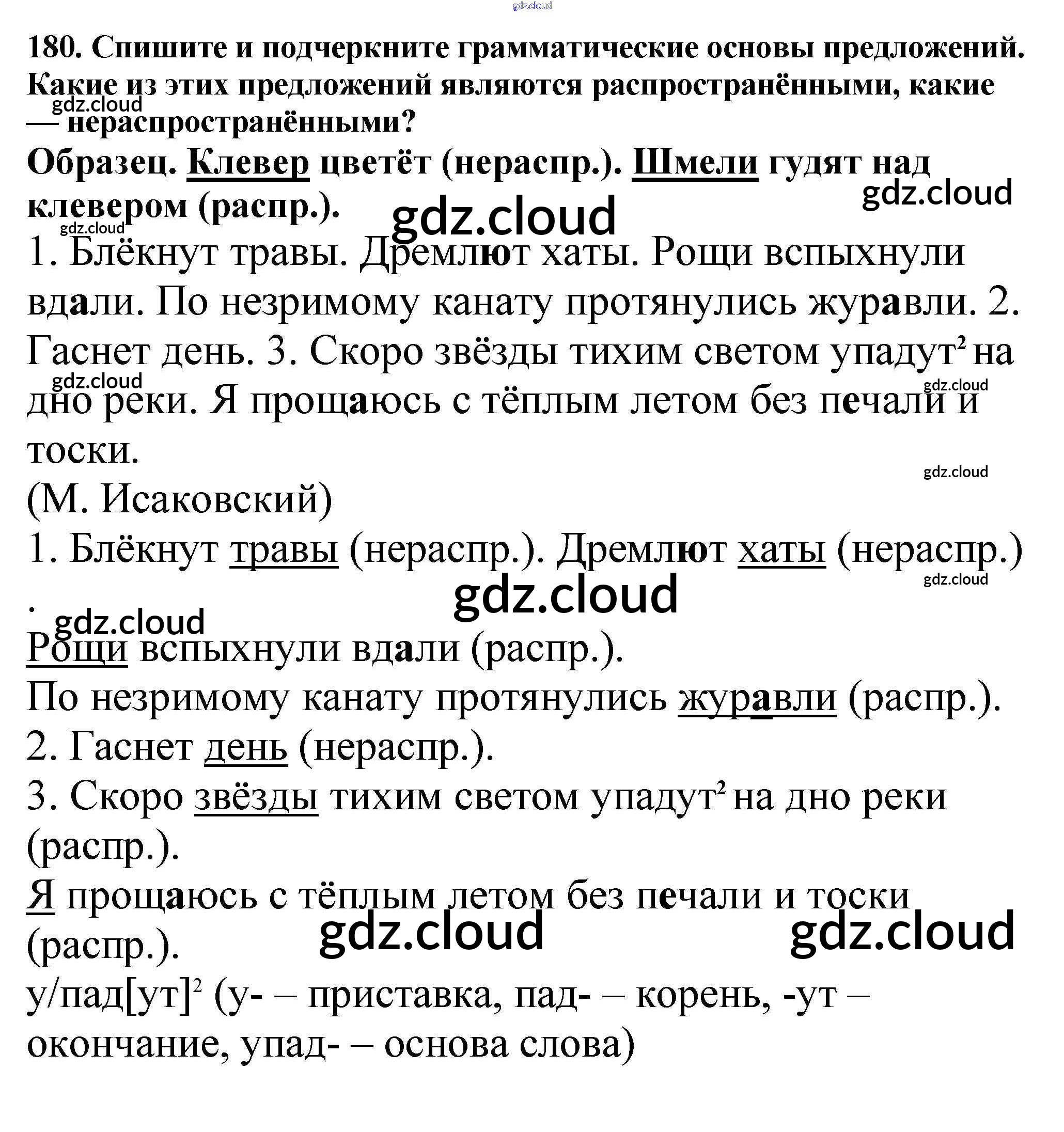 Ответ на задание 180 Учебник Русский язык за 5 (пятый) класс Баранов, Ладыженская, Тростенцова, Кулибаба, Григорян 2016, 2019 Часть 1, 2