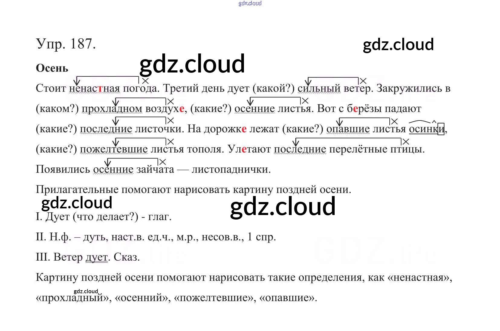 Ответ на задание 187 Учебник Русский язык за 5 (пятый) класс Баранов, Ладыженская, Тростенцова, Кулибаба, Григорян 2016, 2019 Часть 1, 2