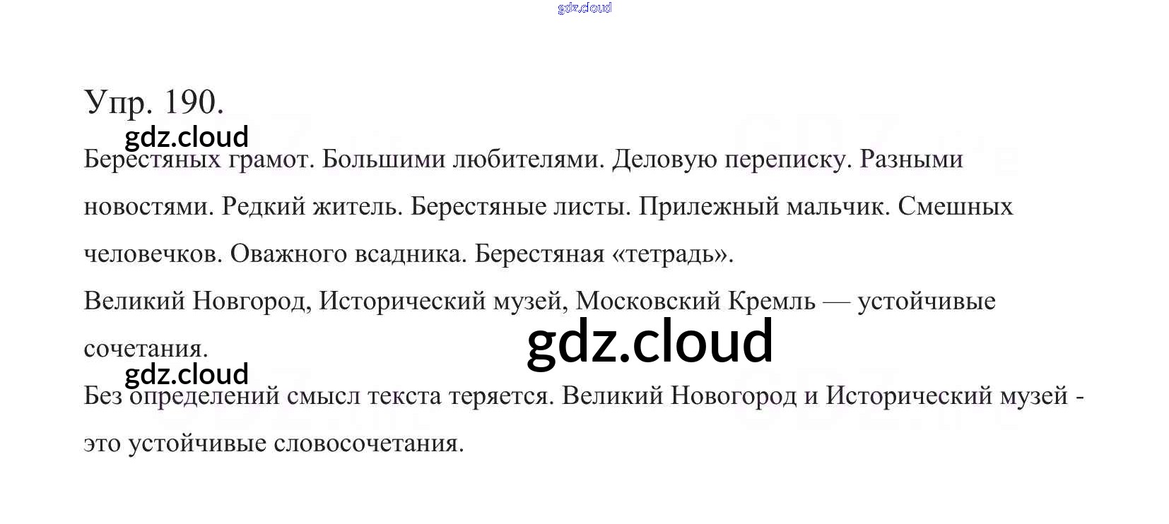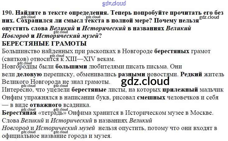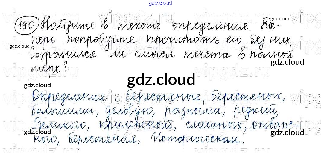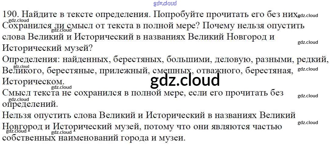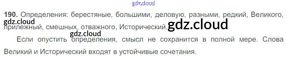 Ответ на задание 190 Учебник Русский язык за 5 (пятый) класс Баранов, Ладыженская, Тростенцова, Кулибаба, Григорян 2016, 2019 Часть 1, 2
