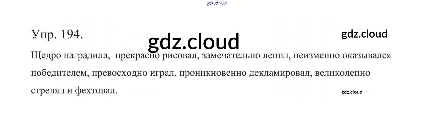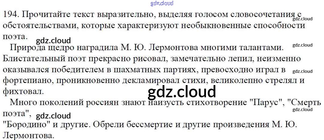 Ответ на задание 194 Учебник Русский язык за 5 (пятый) класс Баранов, Ладыженская, Тростенцова, Кулибаба, Григорян 2016, 2019 Часть 1, 2