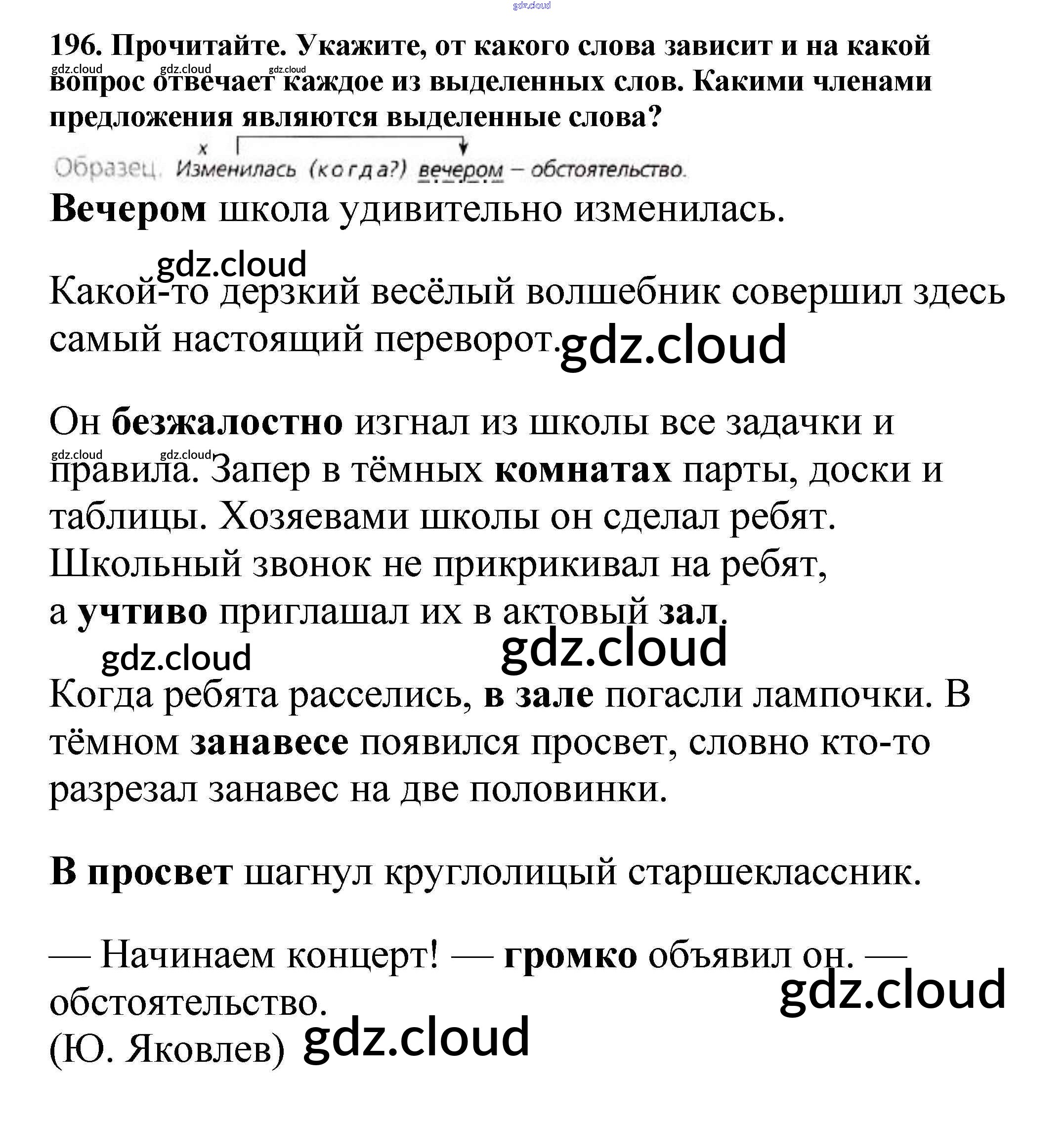Ответ на задание 196 Учебник Русский язык за 5 (пятый) класс Баранов, Ладыженская, Тростенцова, Кулибаба, Григорян 2016, 2019 Часть 1, 2