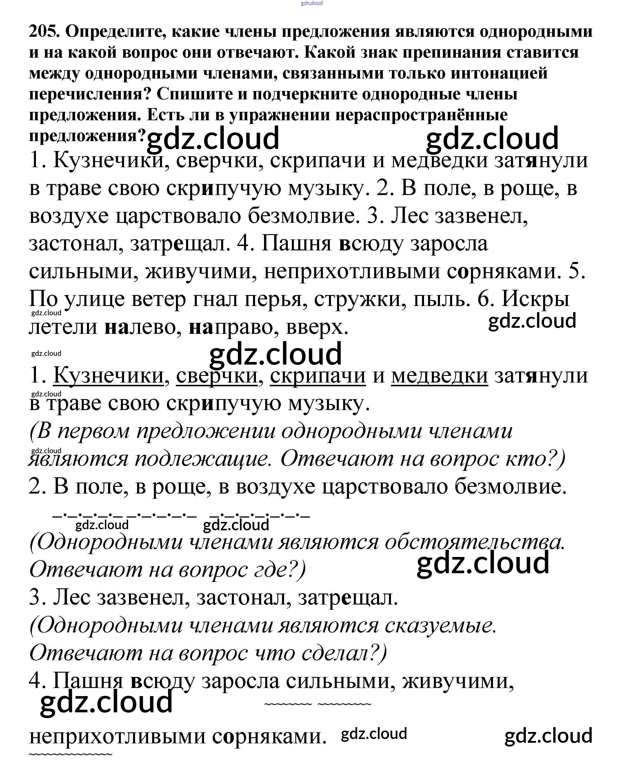 Ответ на задание 205 Учебник Русский язык за 5 (пятый) класс Баранов, Ладыженская, Тростенцова, Кулибаба, Григорян 2016, 2019 Часть 1, 2
