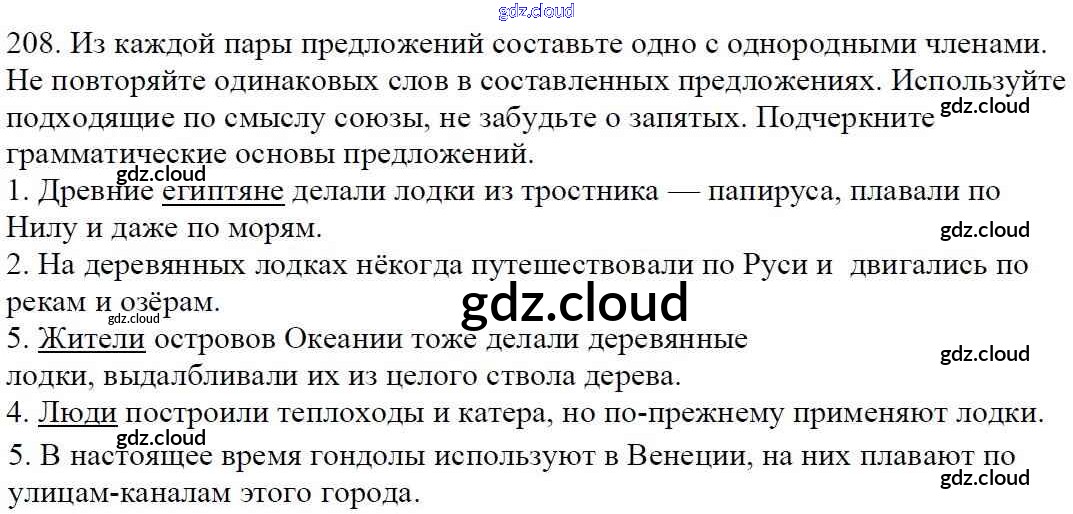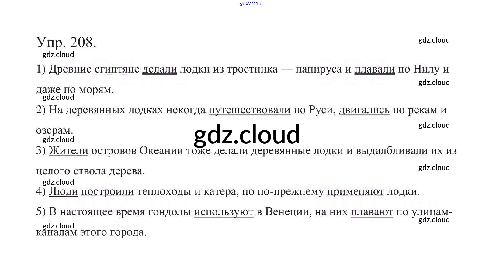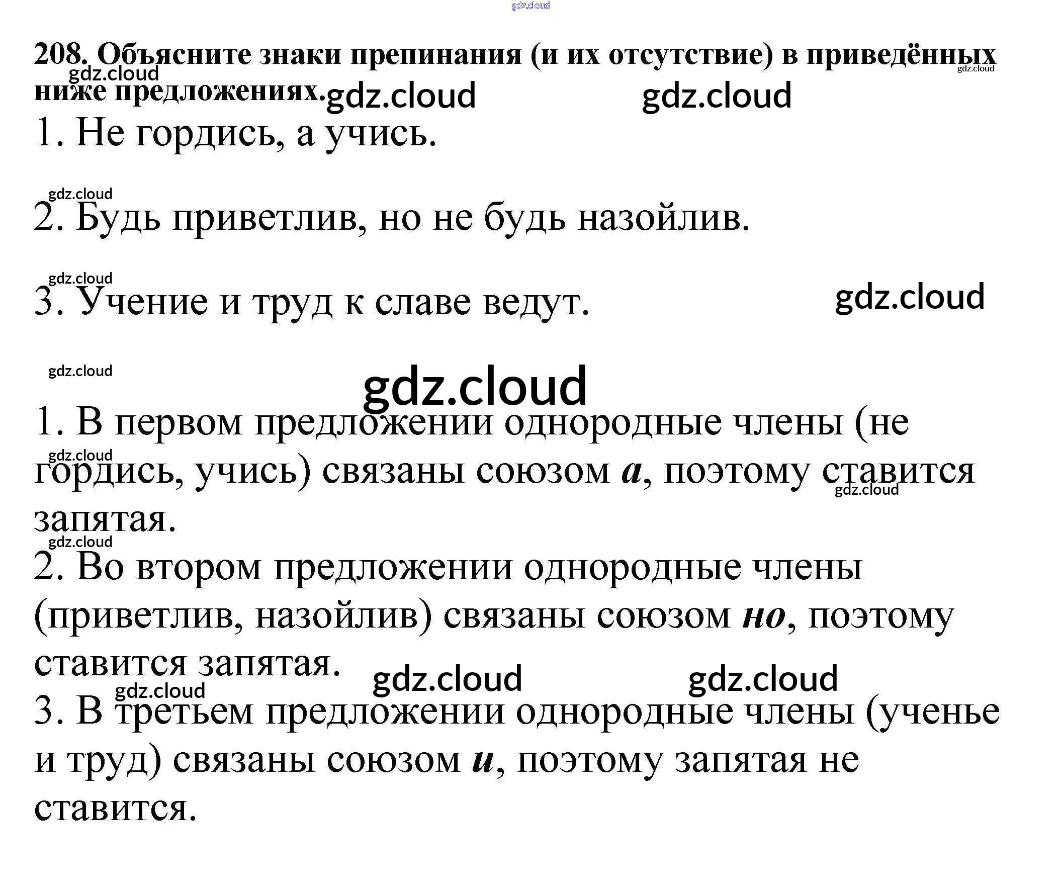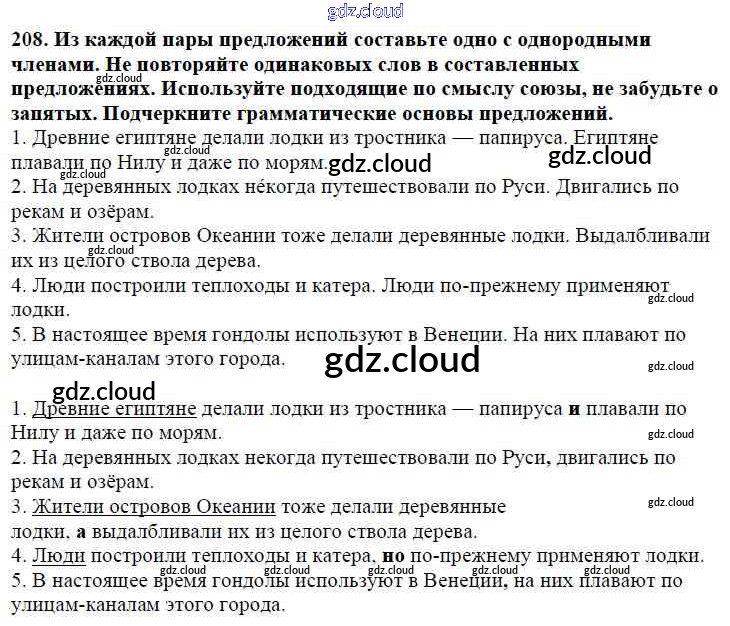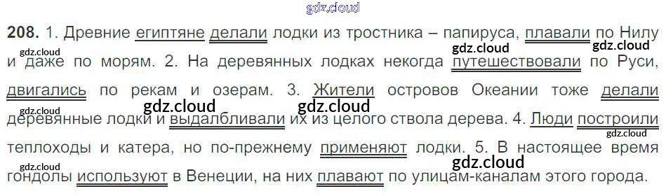 Ответ на задание 208 Учебник Русский язык за 5 (пятый) класс Баранов, Ладыженская, Тростенцова, Кулибаба, Григорян 2016, 2019 Часть 1, 2