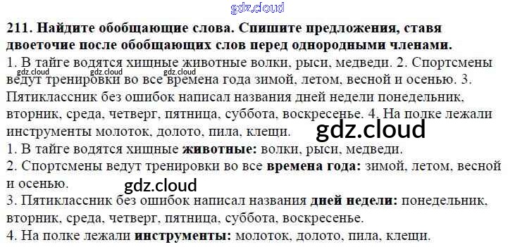 Ответ на задание 211 Учебник Русский язык за 5 (пятый) класс Баранов, Ладыженская, Тростенцова, Кулибаба, Григорян 2016, 2019 Часть 1, 2