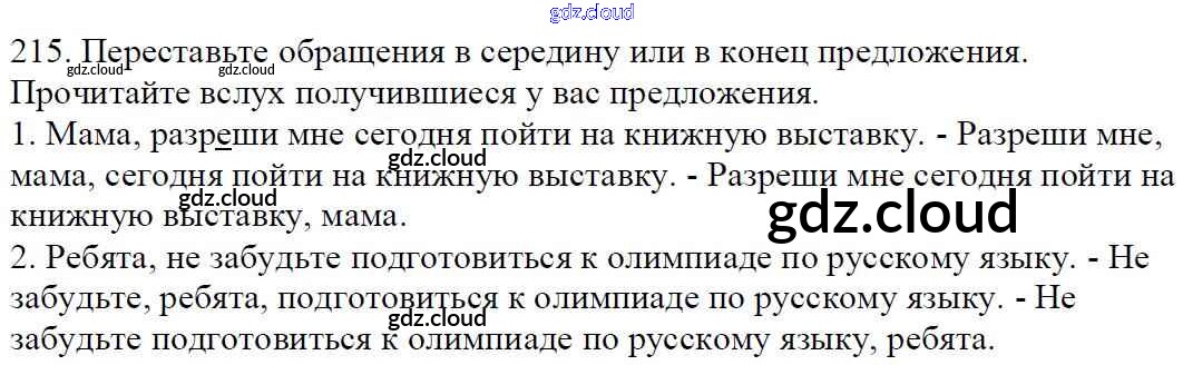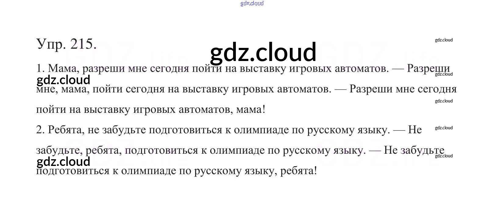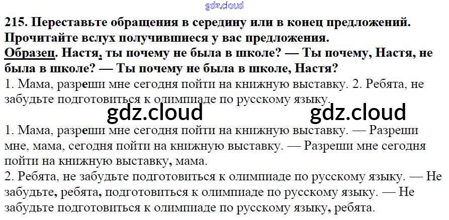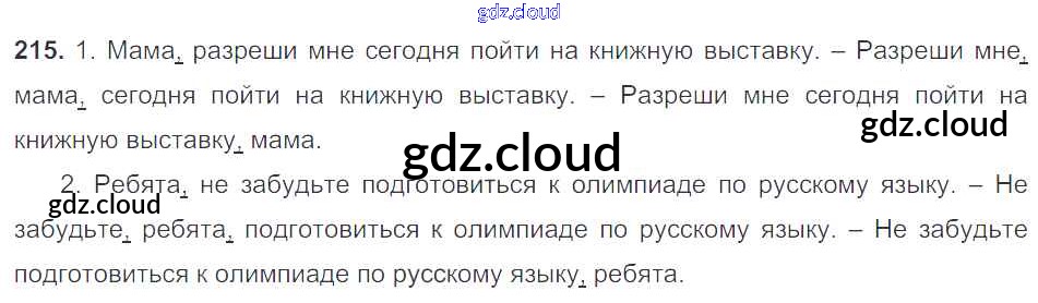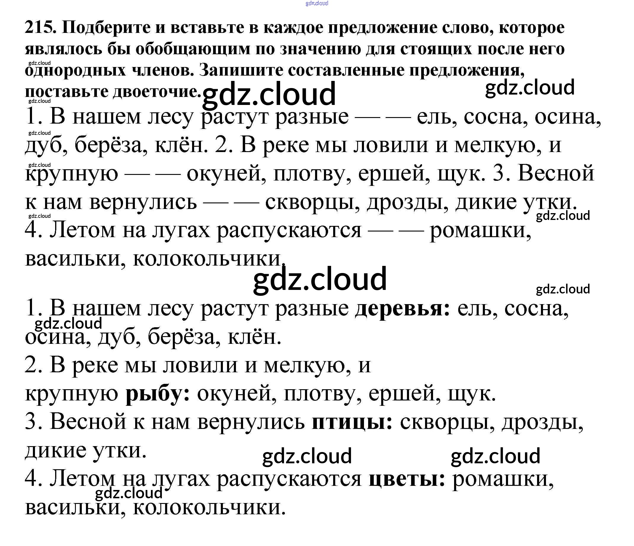 Ответ на задание 215 Учебник Русский язык за 5 (пятый) класс Баранов, Ладыженская, Тростенцова, Кулибаба, Григорян 2016, 2019 Часть 1, 2