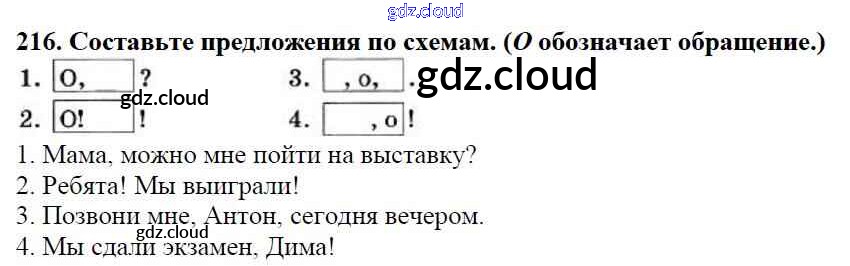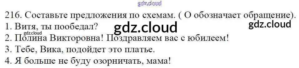 Ответ на задание 216 Учебник Русский язык за 5 (пятый) класс Баранов, Ладыженская, Тростенцова, Кулибаба, Григорян 2016, 2019 Часть 1, 2