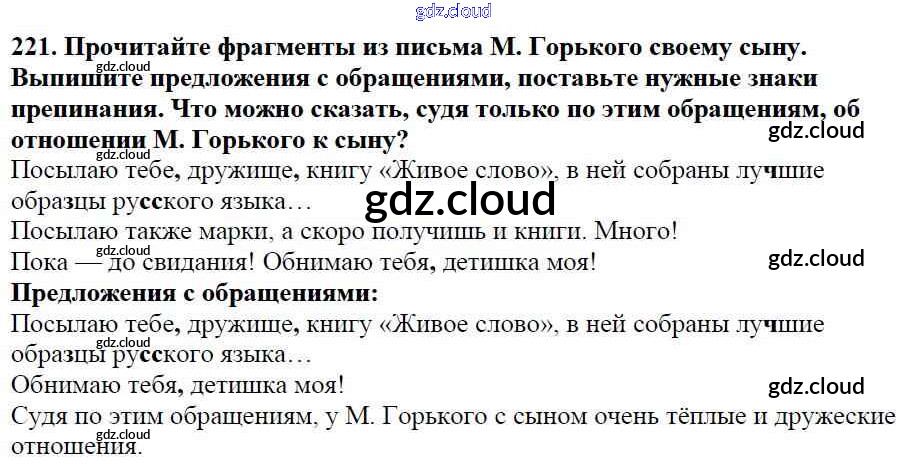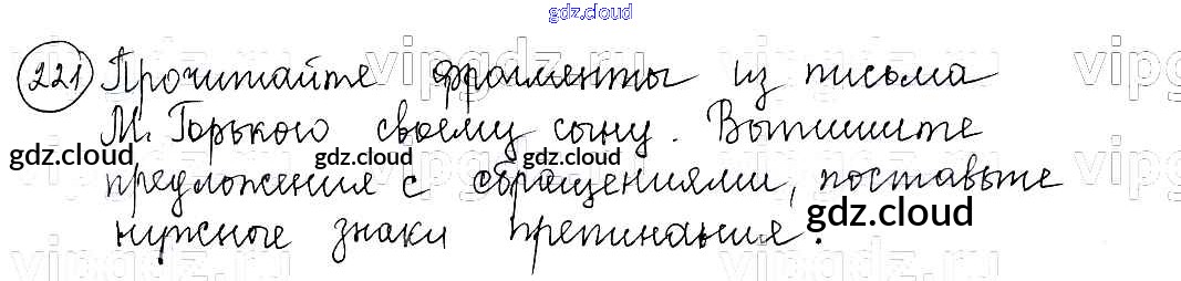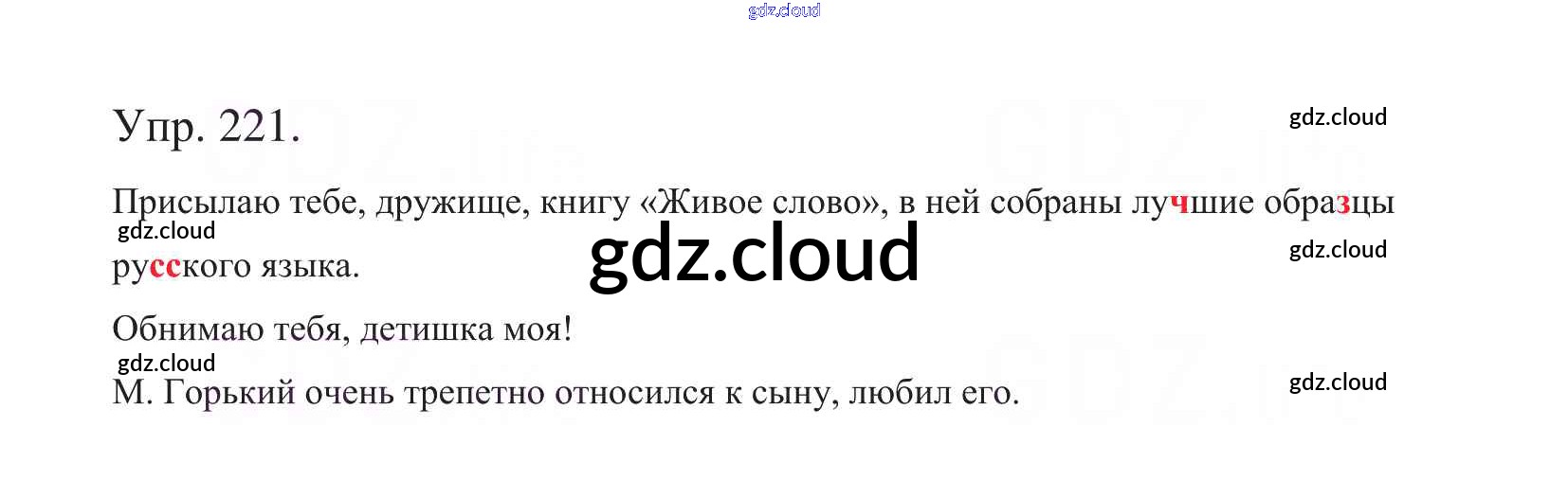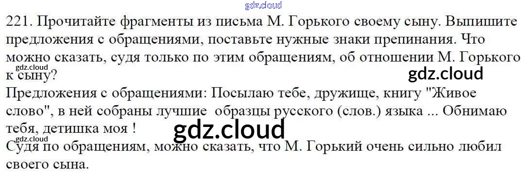 Ответ на задание 221 Учебник Русский язык за 5 (пятый) класс Баранов, Ладыженская, Тростенцова, Кулибаба, Григорян 2016, 2019 Часть 1, 2