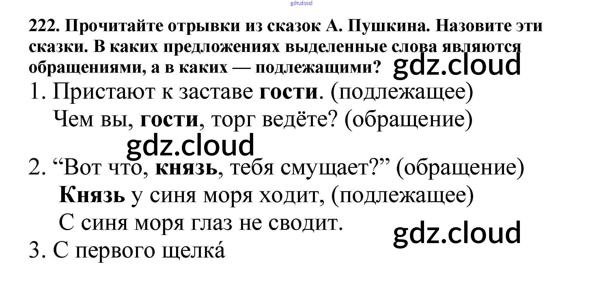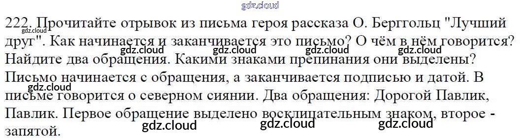Ответ на задание 222 Учебник Русский язык за 5 (пятый) класс Баранов, Ладыженская, Тростенцова, Кулибаба, Григорян 2016, 2019 Часть 1, 2
