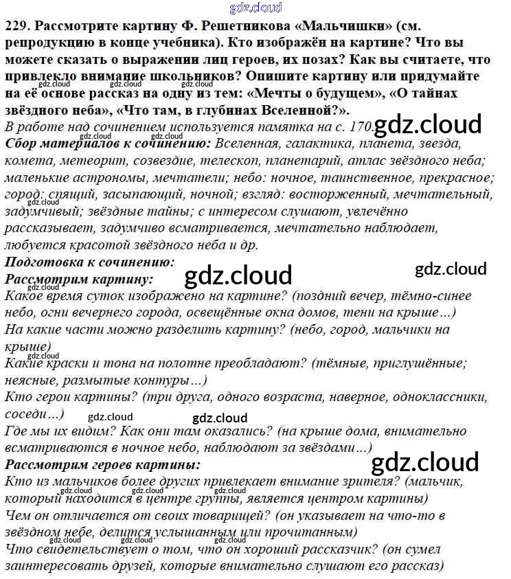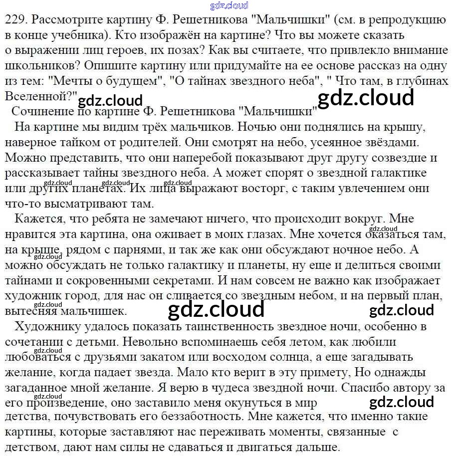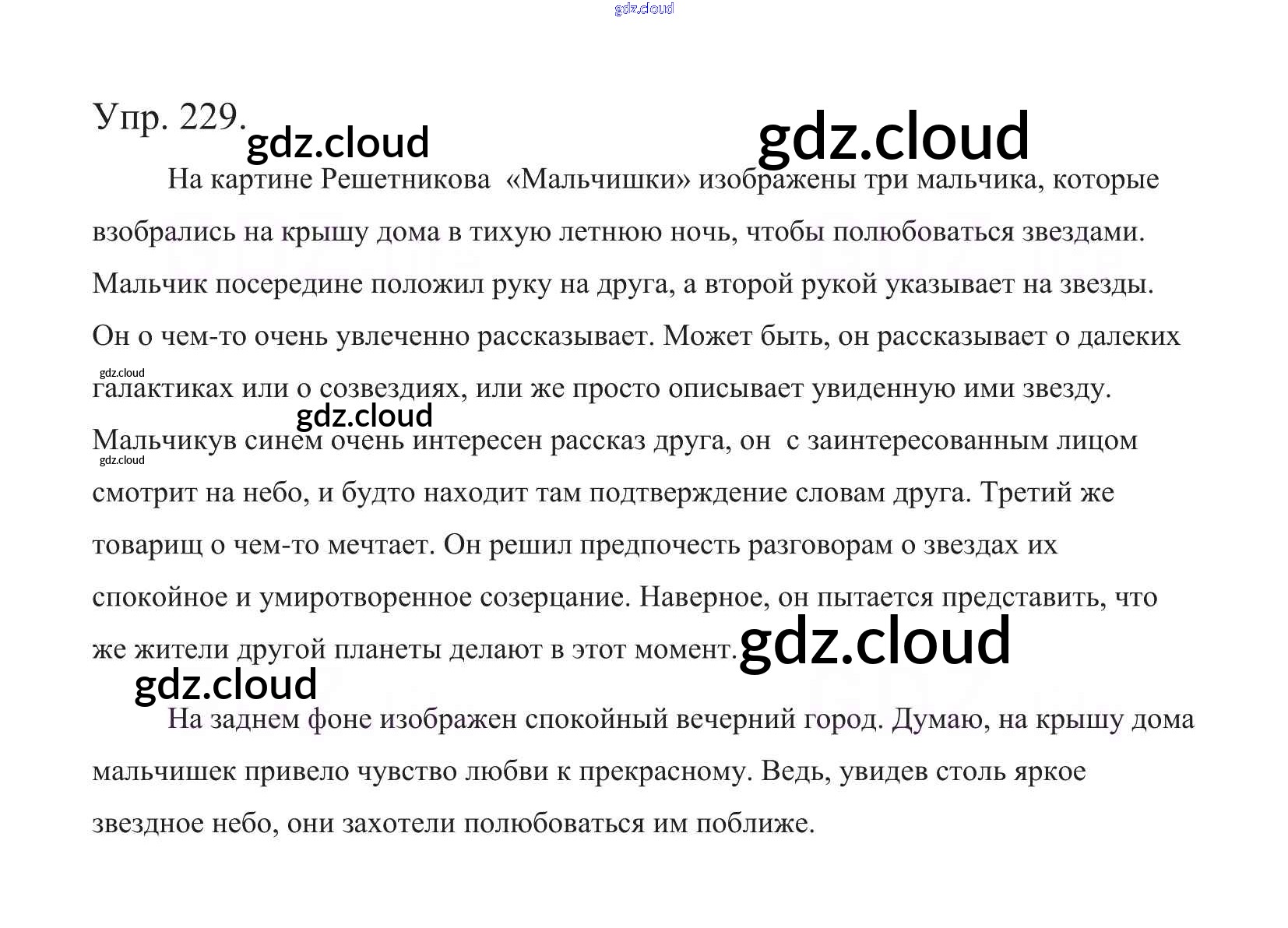 Ответ на задание 229 Учебник Русский язык за 5 (пятый) класс Баранов, Ладыженская, Тростенцова, Кулибаба, Григорян 2016, 2019 Часть 1, 2