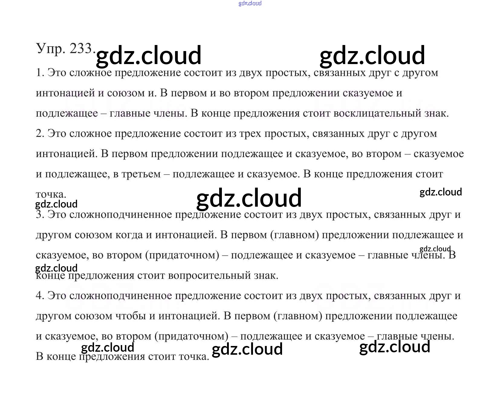 Ответ на задание 233 Учебник Русский язык за 5 (пятый) класс Баранов, Ладыженская, Тростенцова, Кулибаба, Григорян 2016, 2019 Часть 1, 2