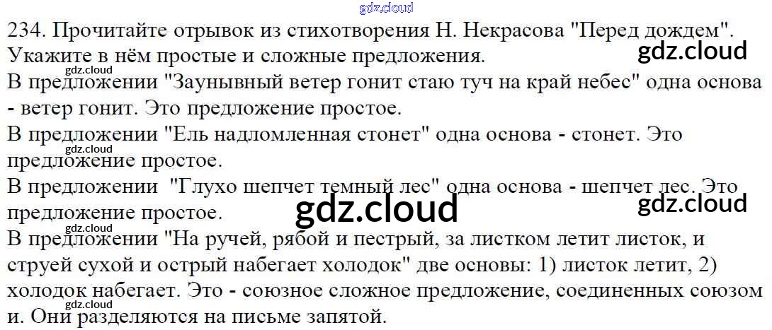 Ответ на задание 234 Учебник Русский язык за 5 (пятый) класс Баранов, Ладыженская, Тростенцова, Кулибаба, Григорян 2016, 2019 Часть 1, 2