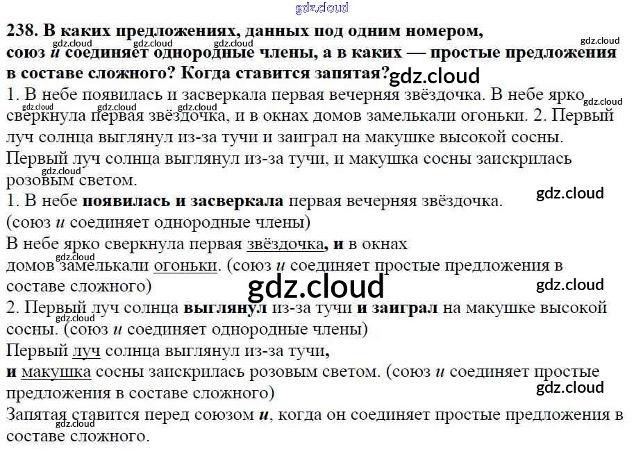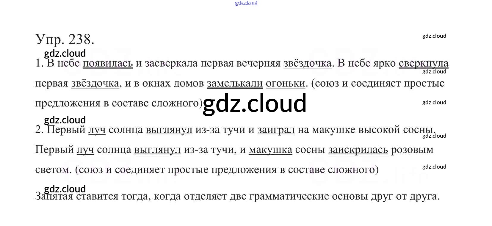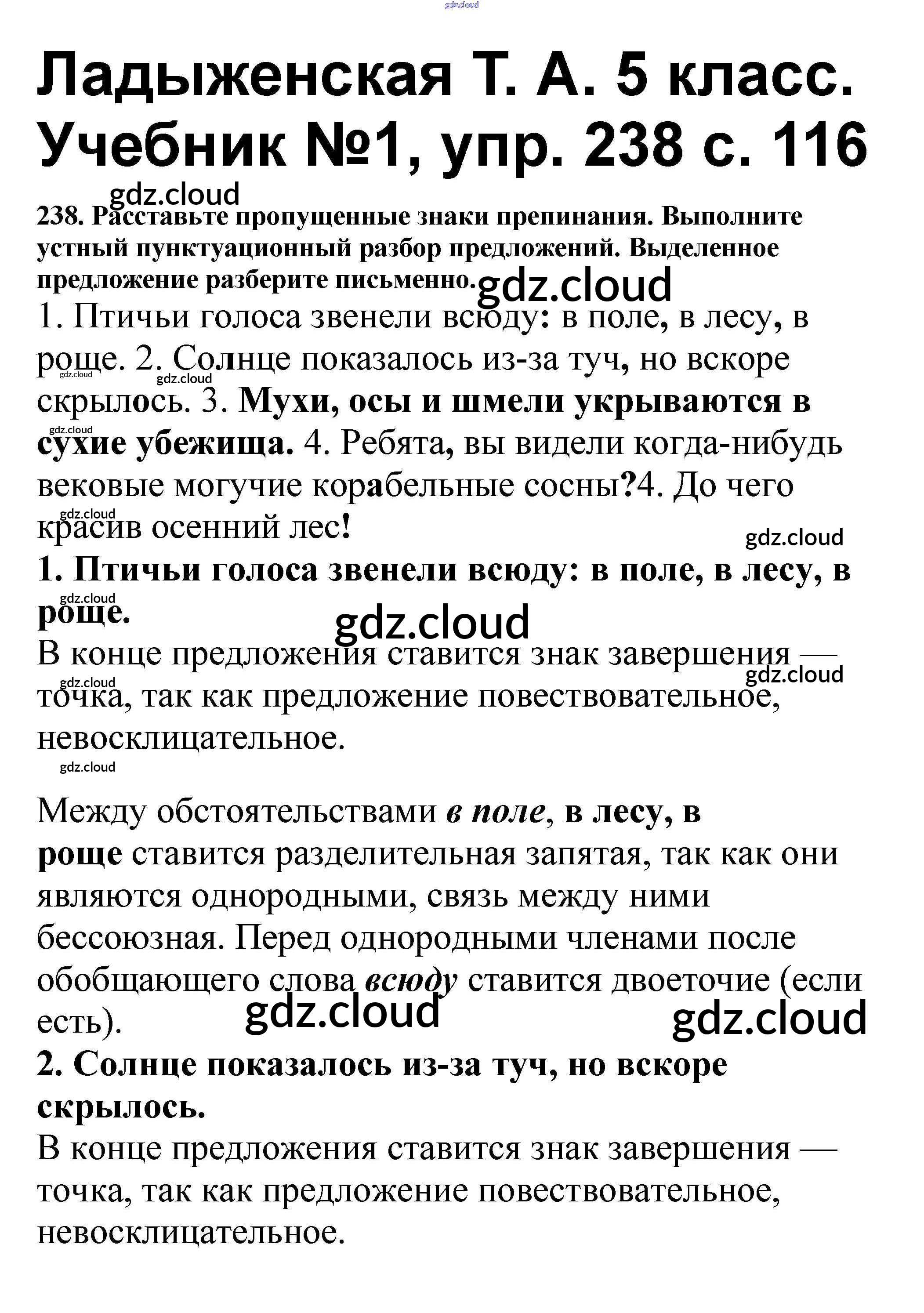 Ответ на задание 238 Учебник Русский язык за 5 (пятый) класс Баранов, Ладыженская, Тростенцова, Кулибаба, Григорян 2016, 2019 Часть 1, 2