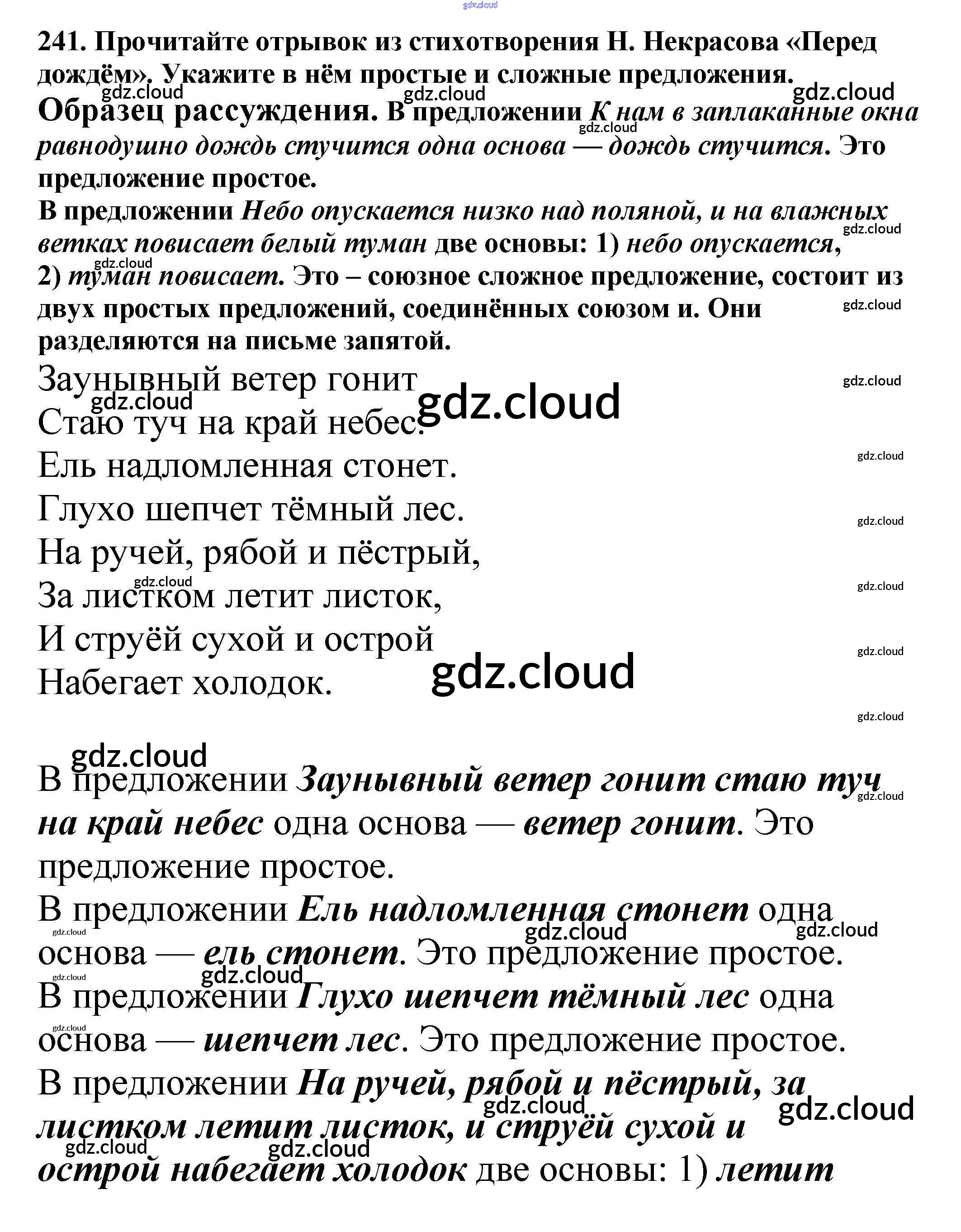 Ответ на задание 241 Учебник Русский язык за 5 (пятый) класс Баранов, Ладыженская, Тростенцова, Кулибаба, Григорян 2016, 2019 Часть 1, 2