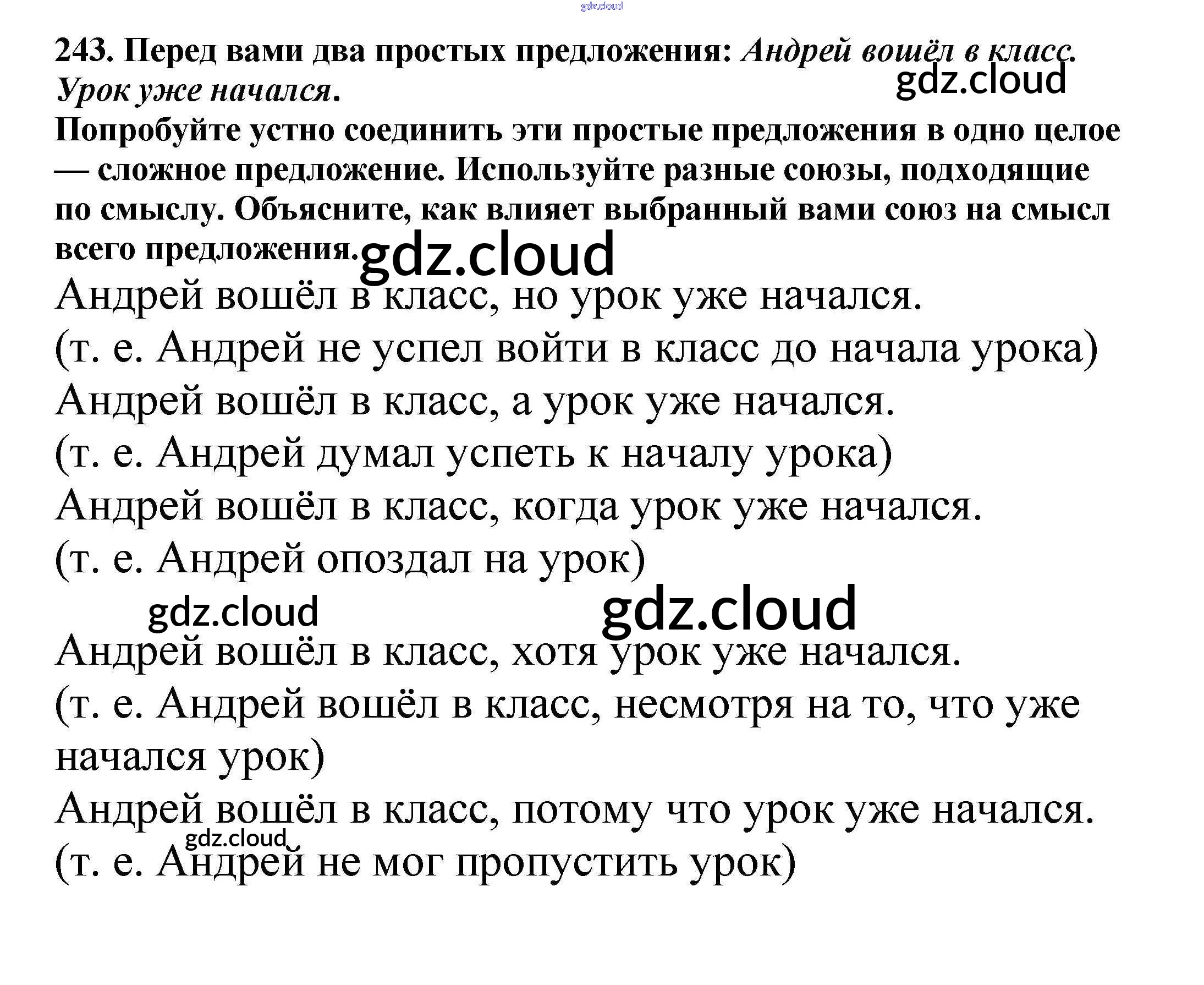 Ответ на задание 243 Учебник Русский язык за 5 (пятый) класс Баранов, Ладыженская, Тростенцова, Кулибаба, Григорян 2016, 2019 Часть 1, 2