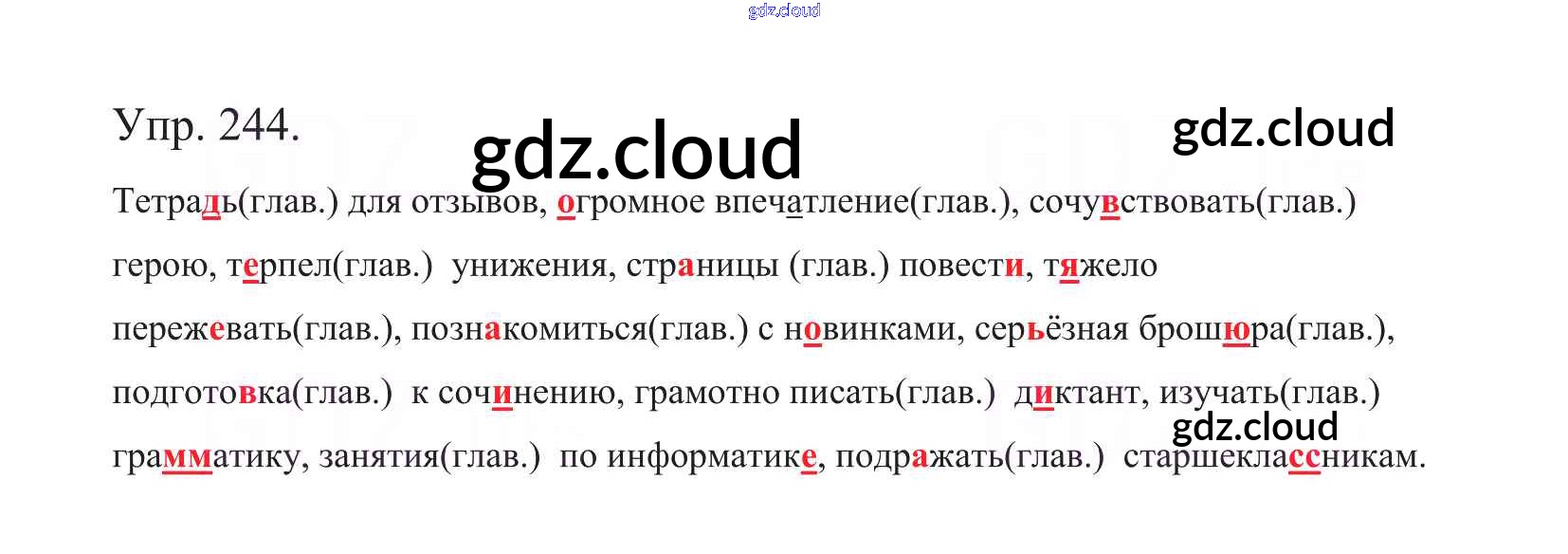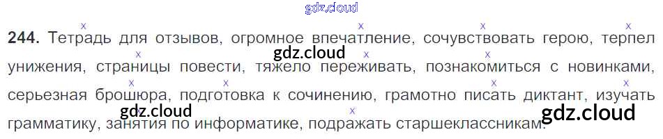 Ответ на задание 244 Учебник Русский язык за 5 (пятый) класс Баранов, Ладыженская, Тростенцова, Кулибаба, Григорян 2016, 2019 Часть 1, 2