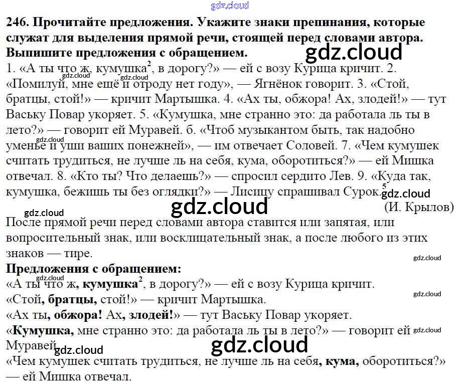 Ответ на задание 246 Учебник Русский язык за 5 (пятый) класс Баранов, Ладыженская, Тростенцова, Кулибаба, Григорян 2016, 2019 Часть 1, 2