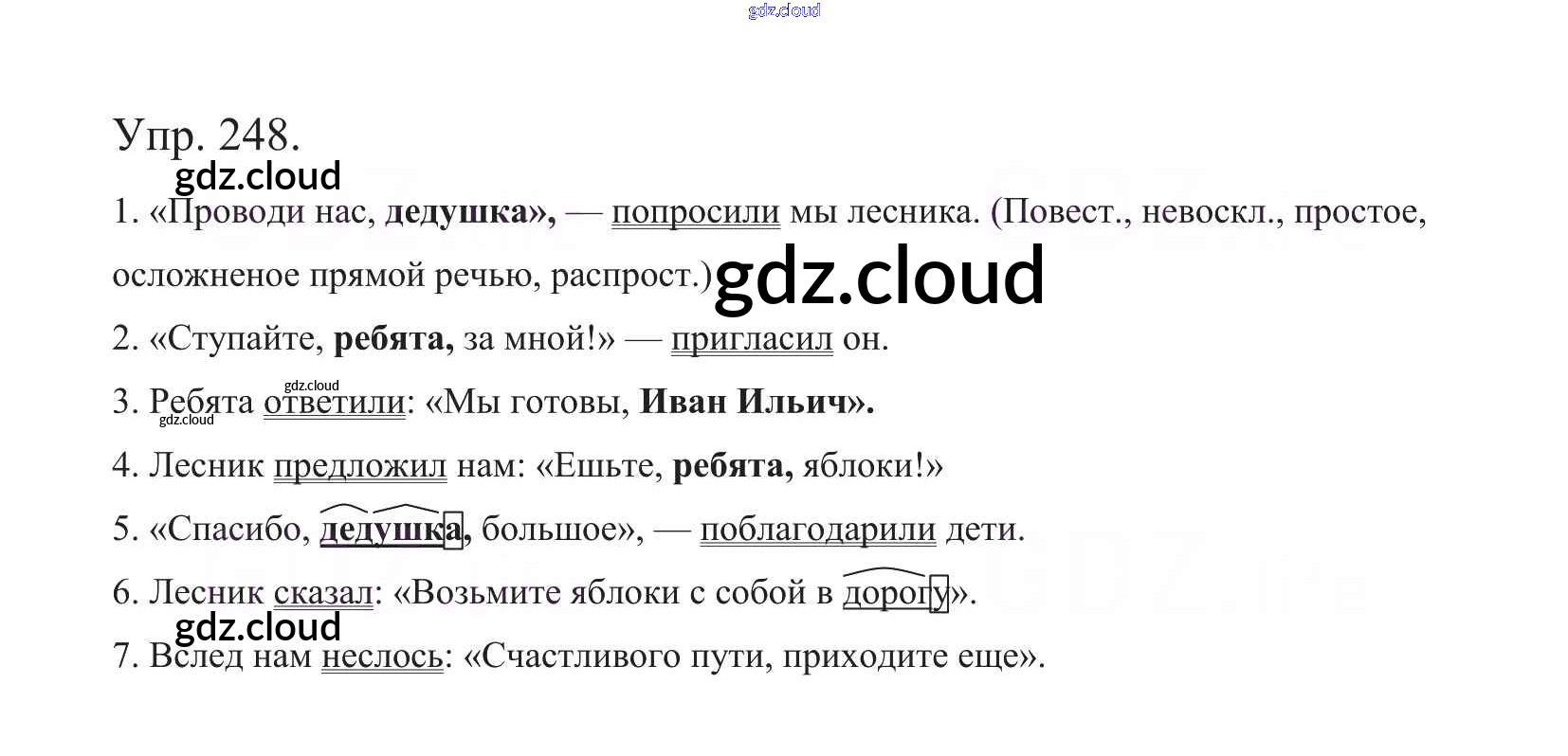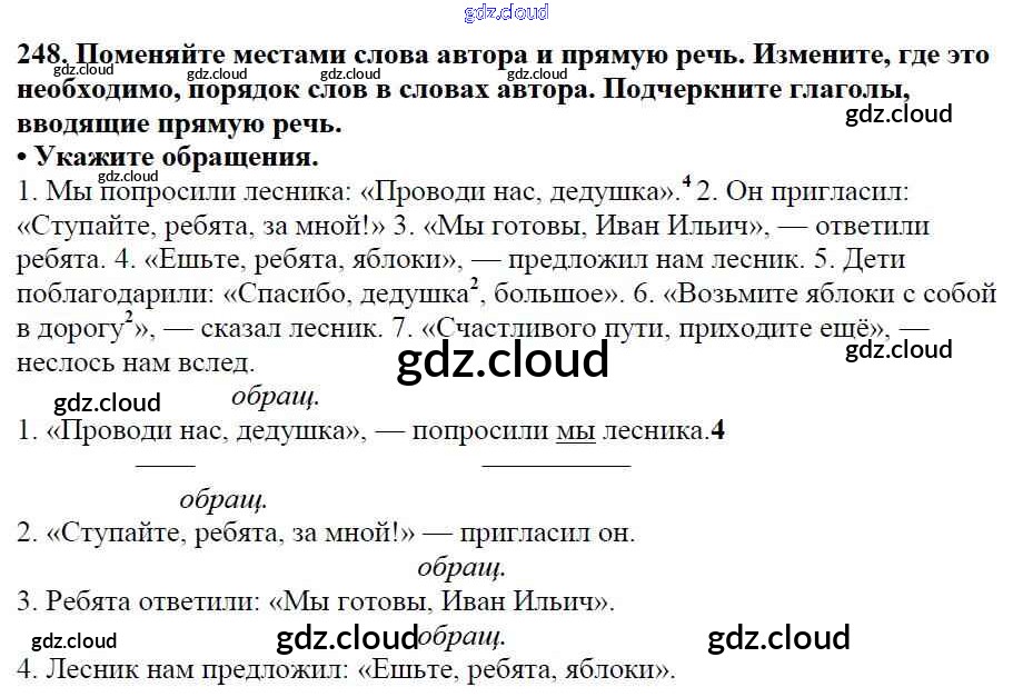 Ответ на задание 248 Учебник Русский язык за 5 (пятый) класс Баранов, Ладыженская, Тростенцова, Кулибаба, Григорян 2016, 2019 Часть 1, 2