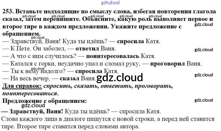 Ответ на задание 253 Учебник Русский язык за 5 (пятый) класс Баранов, Ладыженская, Тростенцова, Кулибаба, Григорян 2016, 2019 Часть 1, 2