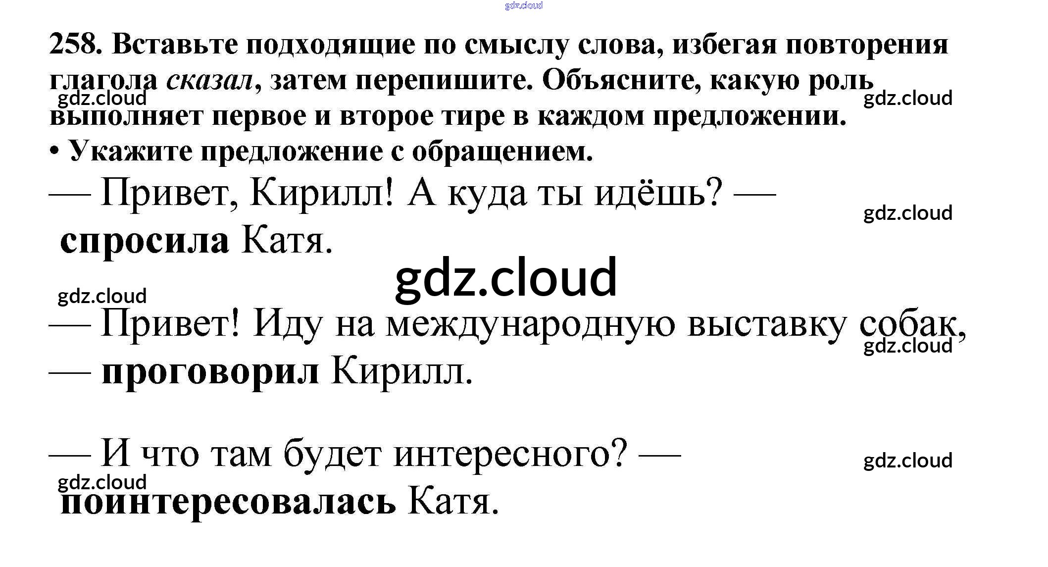 Ответ на задание 258 Учебник Русский язык за 5 (пятый) класс Баранов, Ладыженская, Тростенцова, Кулибаба, Григорян 2016, 2019 Часть 1, 2
