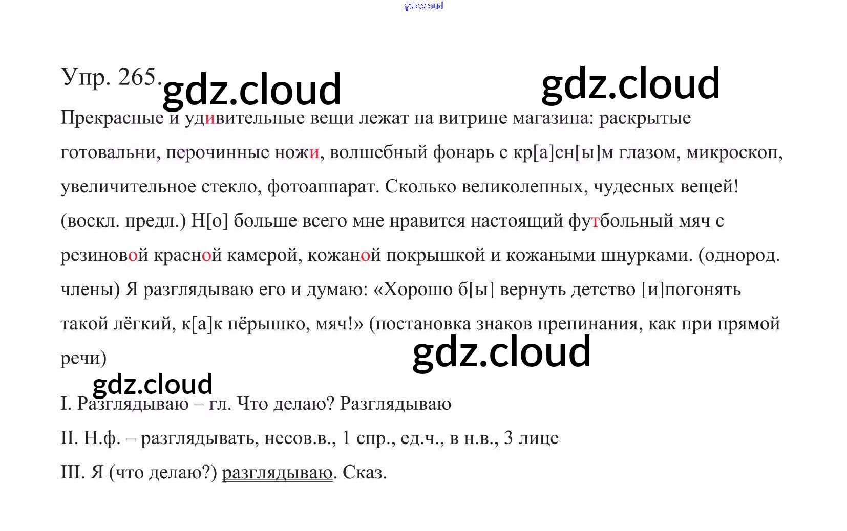 Ответ на задание 265 Учебник Русский язык за 5 (пятый) класс Баранов, Ладыженская, Тростенцова, Кулибаба, Григорян 2016, 2019 Часть 1, 2