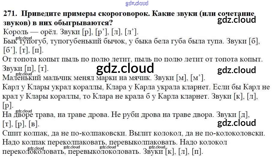 Ответ на задание 271 Учебник Русский язык за 5 (пятый) класс Баранов, Ладыженская, Тростенцова, Кулибаба, Григорян 2016, 2019 Часть 1, 2
