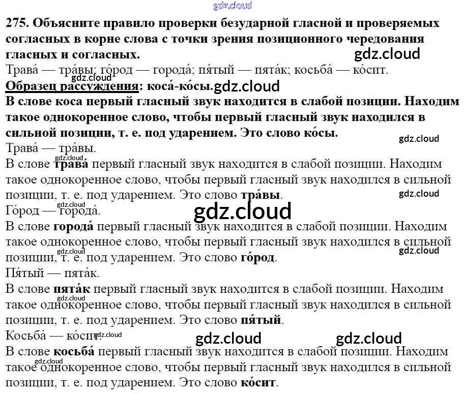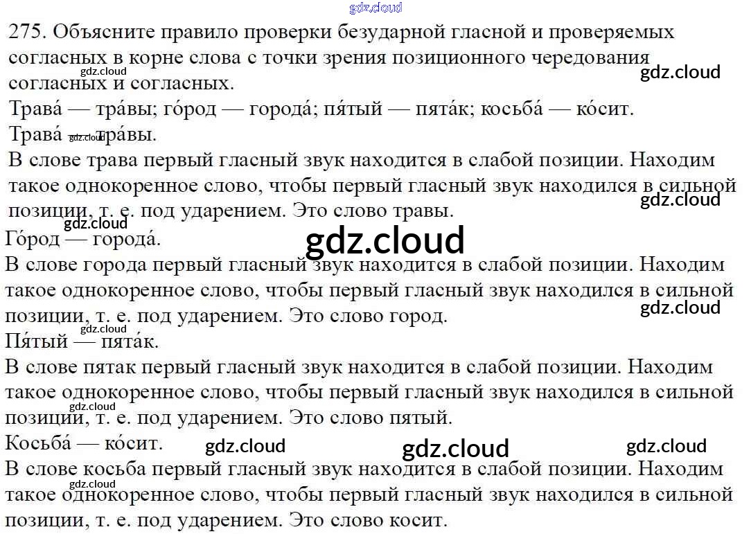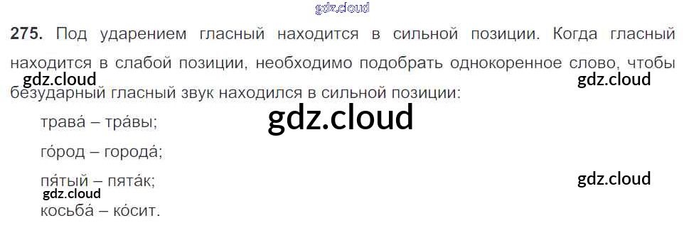 Ответ на задание 275 Учебник Русский язык за 5 (пятый) класс Баранов, Ладыженская, Тростенцова, Кулибаба, Григорян 2016, 2019 Часть 1, 2