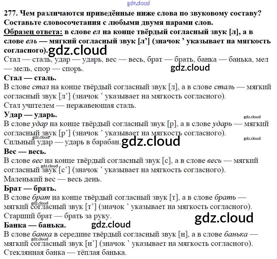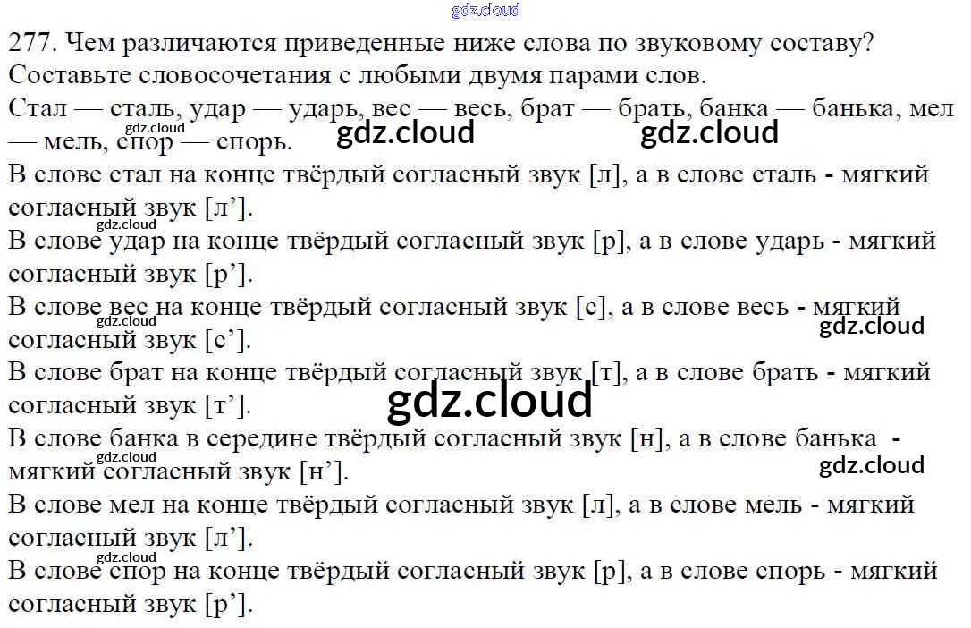 Ответ на задание 277 Учебник Русский язык за 5 (пятый) класс Баранов, Ладыженская, Тростенцова, Кулибаба, Григорян 2016, 2019 Часть 1, 2