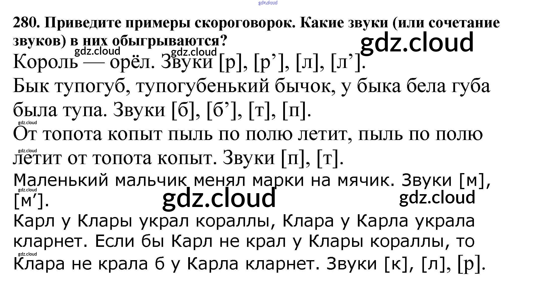 Ответ на задание 280 Учебник Русский язык за 5 (пятый) класс Баранов, Ладыженская, Тростенцова, Кулибаба, Григорян 2016, 2019 Часть 1, 2