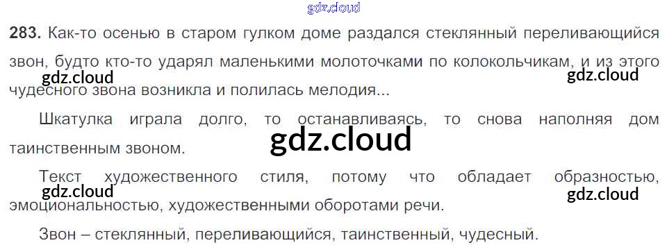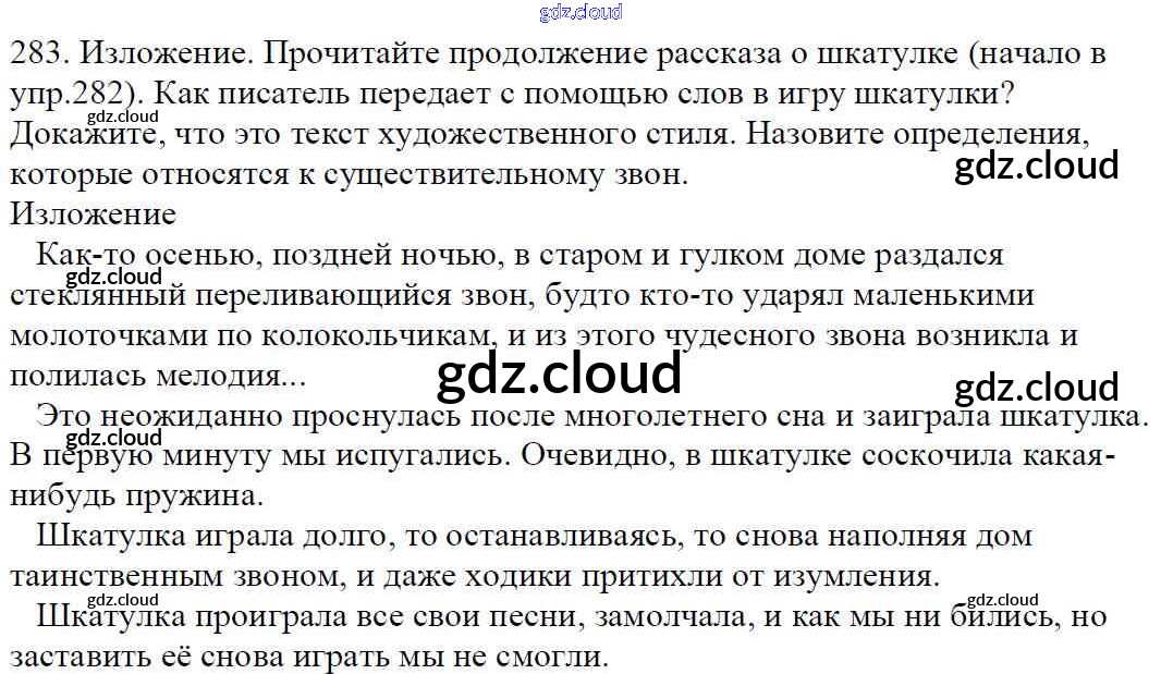 Ответ на задание 283 Учебник Русский язык за 5 (пятый) класс Баранов, Ладыженская, Тростенцова, Кулибаба, Григорян 2016, 2019 Часть 1, 2