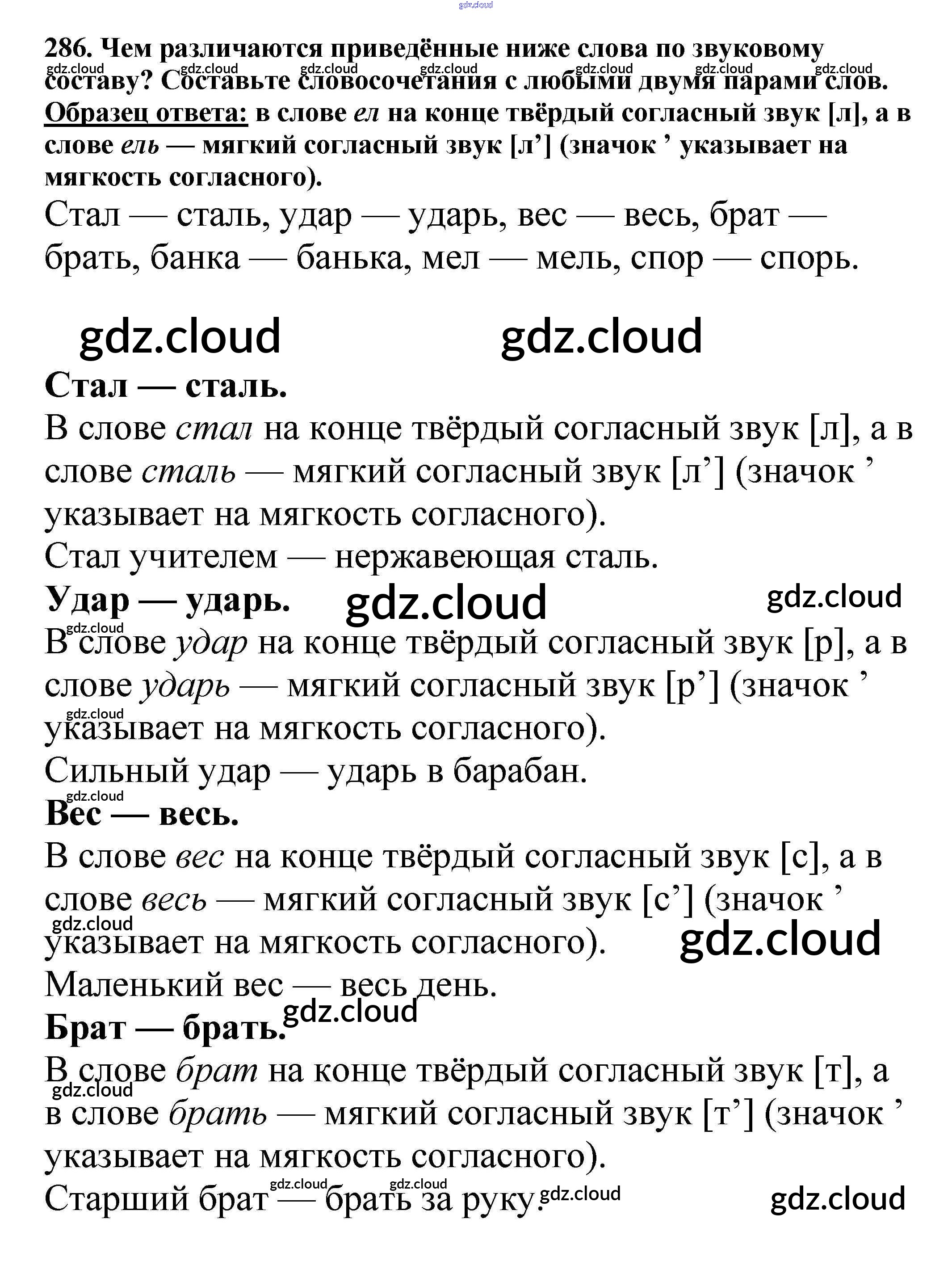 Ответ на задание 286 Учебник Русский язык за 5 (пятый) класс Баранов, Ладыженская, Тростенцова, Кулибаба, Григорян 2016, 2019 Часть 1, 2