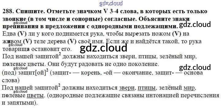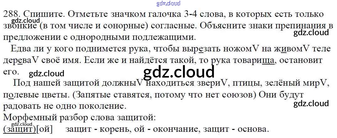 Ответ на задание 288 Учебник Русский язык за 5 (пятый) класс Баранов, Ладыженская, Тростенцова, Кулибаба, Григорян 2016, 2019 Часть 1, 2