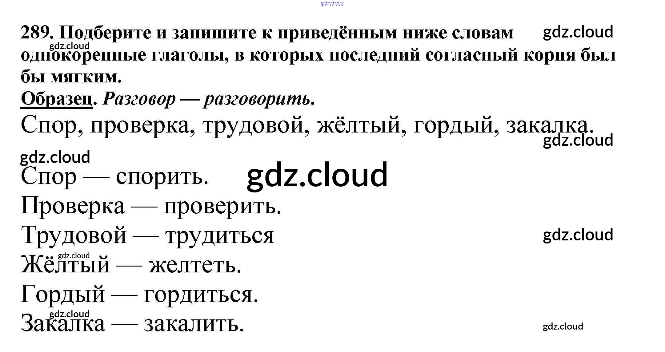 Ответ на задание 289 Учебник Русский язык за 5 (пятый) класс Баранов, Ладыженская, Тростенцова, Кулибаба, Григорян 2016, 2019 Часть 1, 2