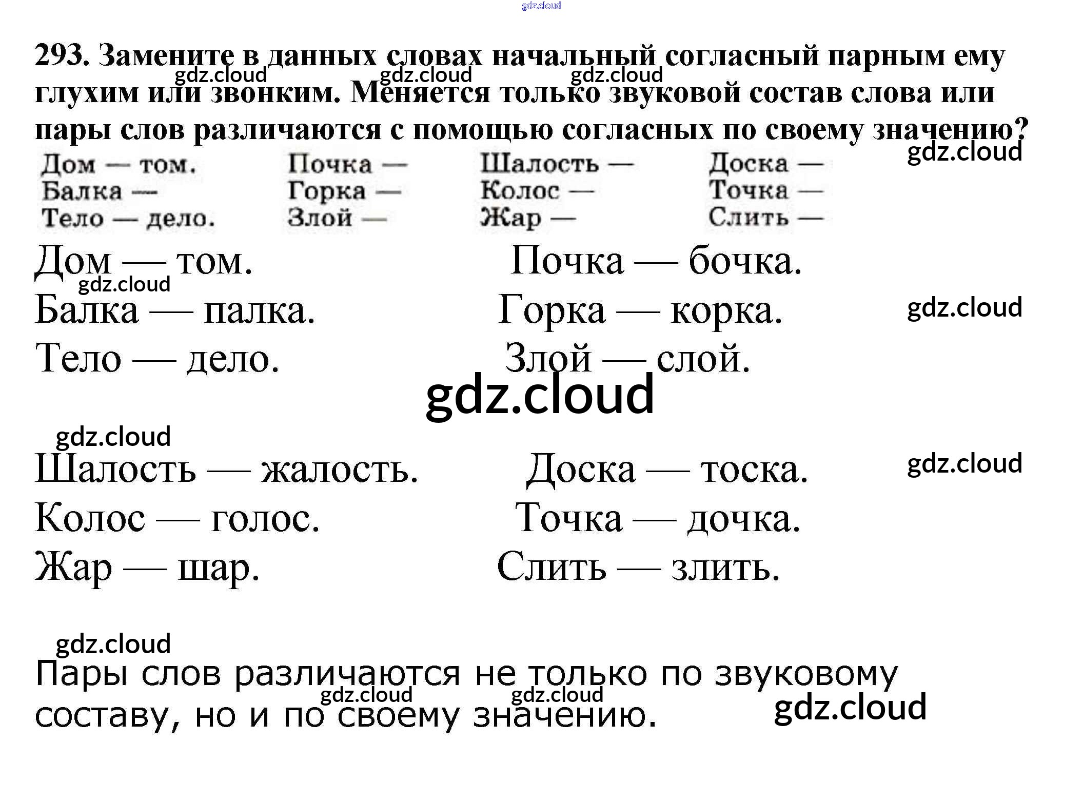 Ответ на задание 293 Учебник Русский язык за 5 (пятый) класс Баранов, Ладыженская, Тростенцова, Кулибаба, Григорян 2016, 2019 Часть 1, 2