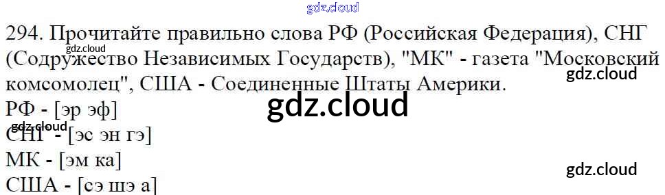 Ответ на задание 294 Учебник Русский язык за 5 (пятый) класс Баранов, Ладыженская, Тростенцова, Кулибаба, Григорян 2016, 2019 Часть 1, 2