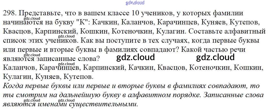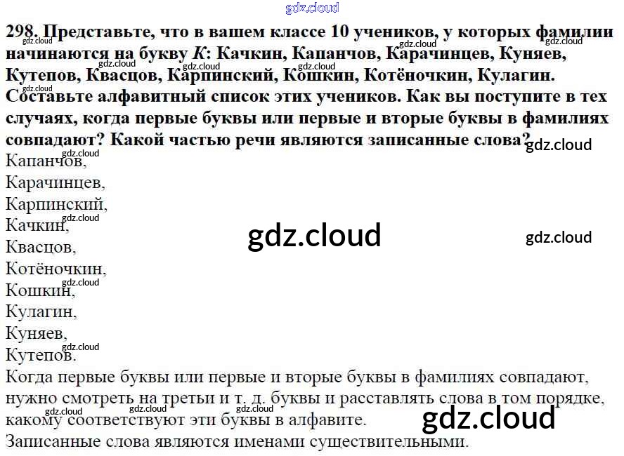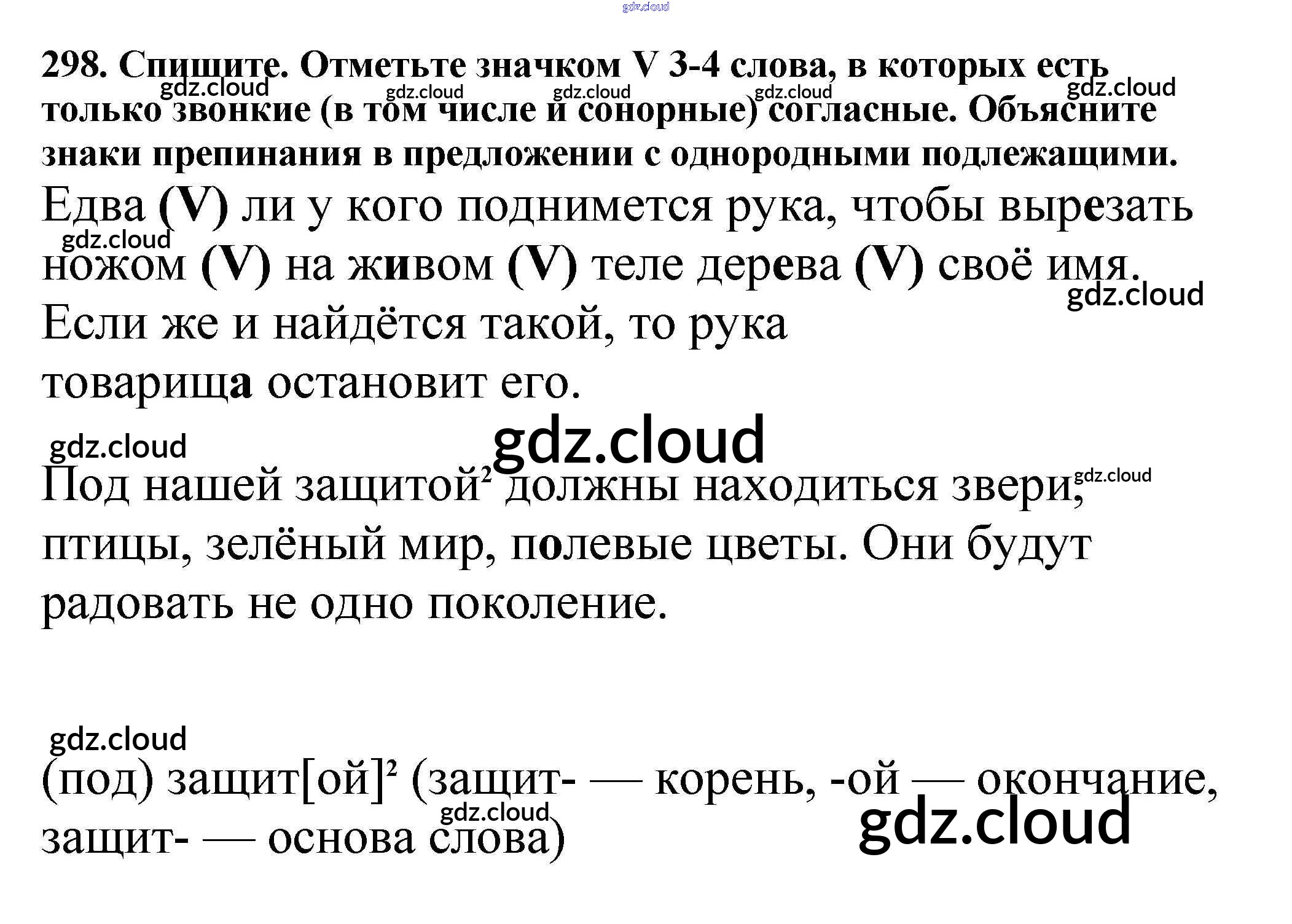 Ответ на задание 298 Учебник Русский язык за 5 (пятый) класс Баранов, Ладыженская, Тростенцова, Кулибаба, Григорян 2016, 2019 Часть 1, 2