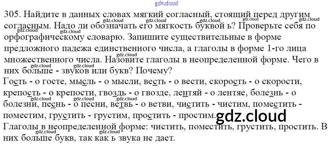 Ответ на задание 305 Учебник Русский язык за 5 (пятый) класс Баранов, Ладыженская, Тростенцова, Кулибаба, Григорян 2016, 2019 Часть 1, 2