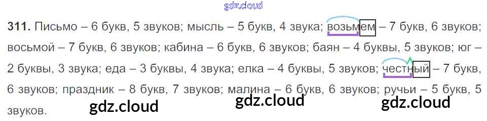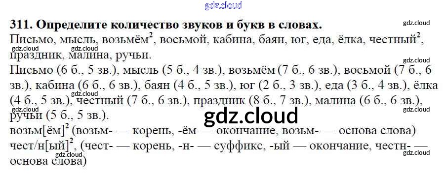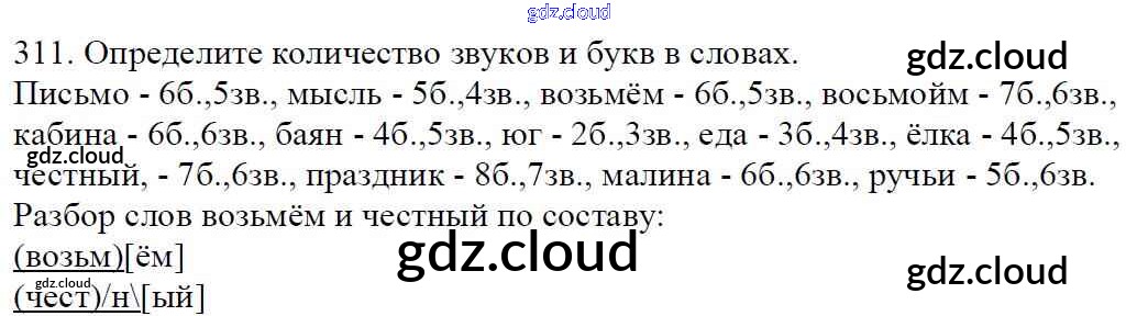 Ответ на задание 311 Учебник Русский язык за 5 (пятый) класс Баранов, Ладыженская, Тростенцова, Кулибаба, Григорян 2016, 2019 Часть 1, 2