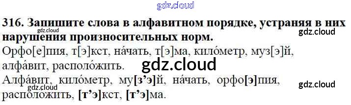 Ответ на задание 316 Учебник Русский язык за 5 (пятый) класс Баранов, Ладыженская, Тростенцова, Кулибаба, Григорян 2016, 2019 Часть 1, 2