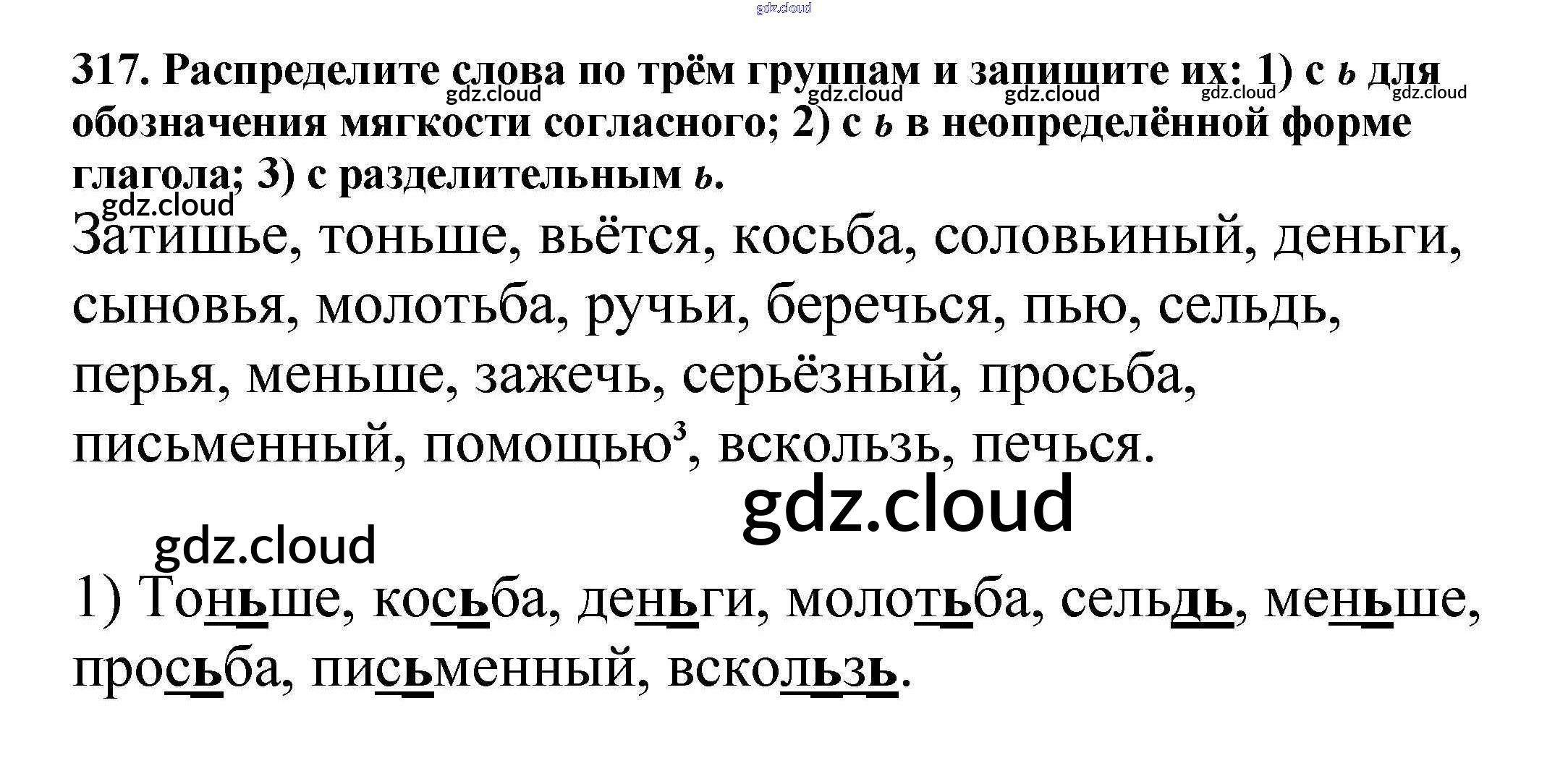 Ответ на задание 317 Учебник Русский язык за 5 (пятый) класс Баранов, Ладыженская, Тростенцова, Кулибаба, Григорян 2016, 2019 Часть 1, 2