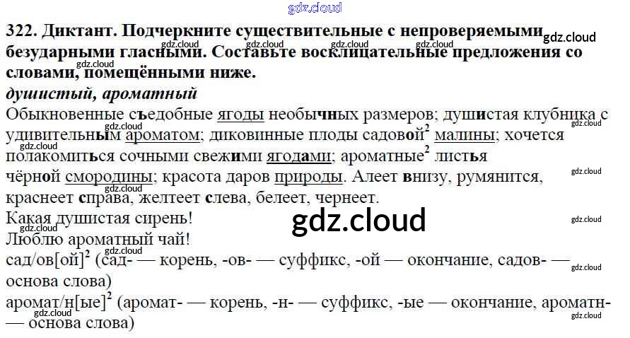 Ответ на задание 322 Учебник Русский язык за 5 (пятый) класс Баранов, Ладыженская, Тростенцова, Кулибаба, Григорян 2016, 2019 Часть 1, 2
