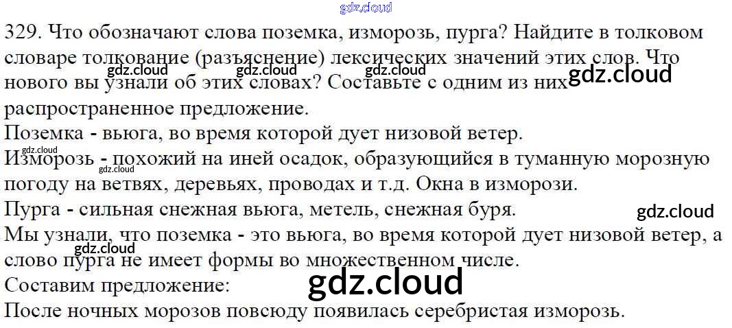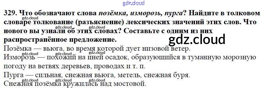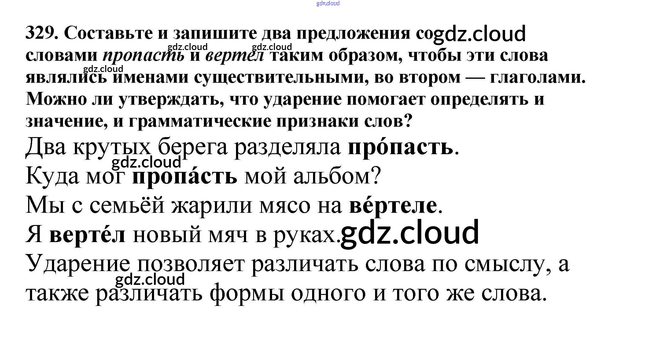 Ответ на задание 329 Учебник Русский язык за 5 (пятый) класс Баранов, Ладыженская, Тростенцова, Кулибаба, Григорян 2016, 2019 Часть 1, 2