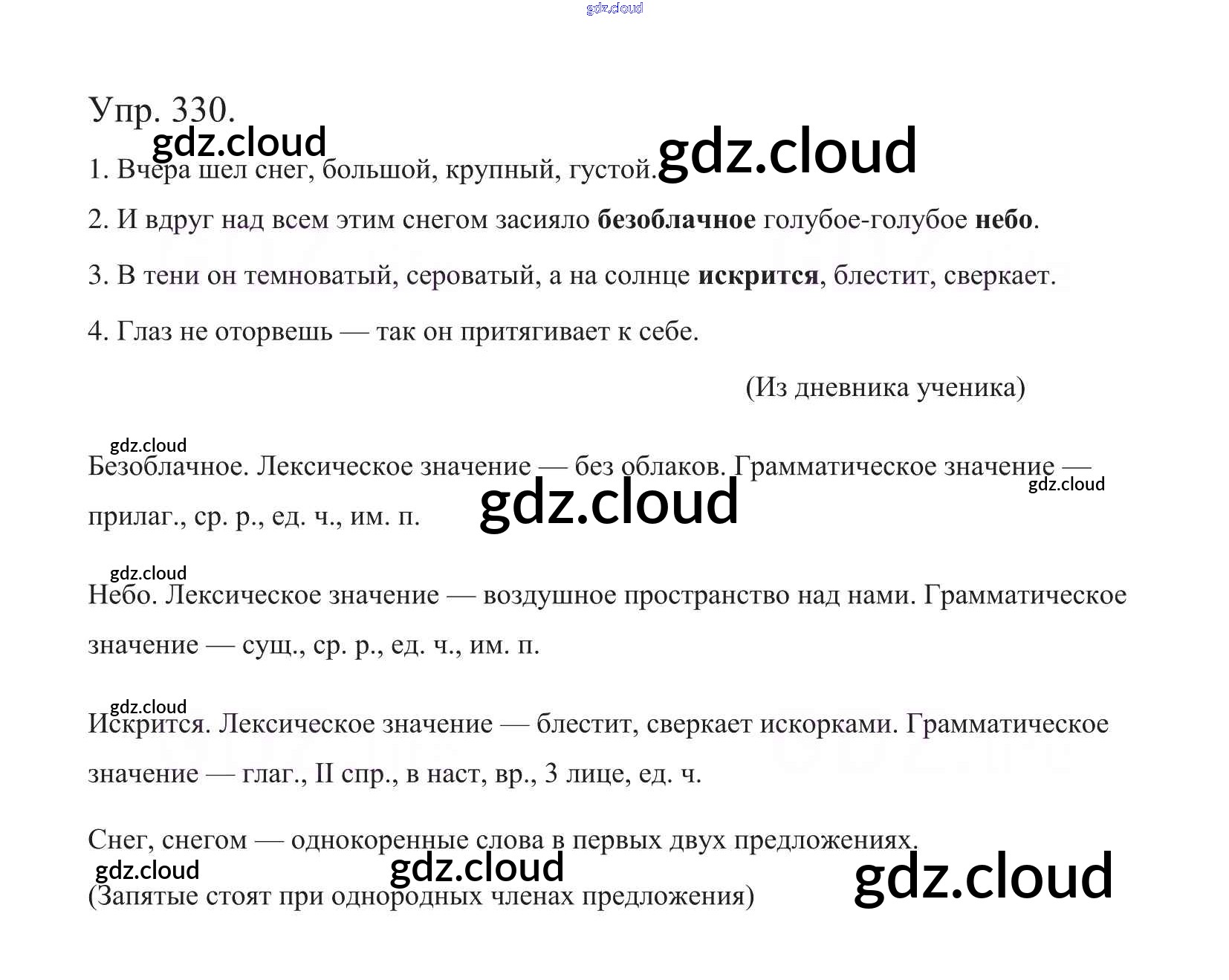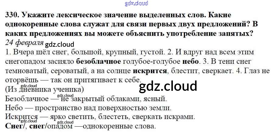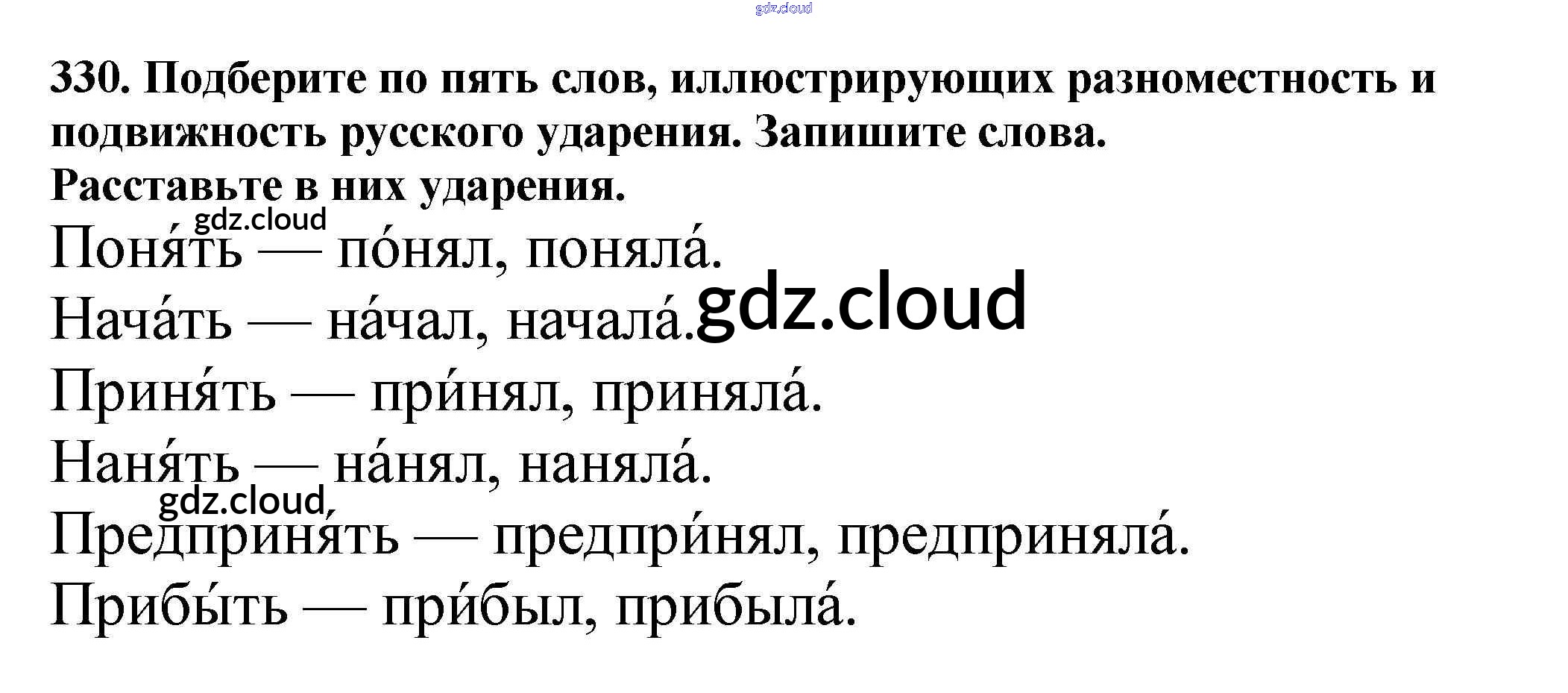 Ответ на задание 330 Учебник Русский язык за 5 (пятый) класс Баранов, Ладыженская, Тростенцова, Кулибаба, Григорян 2016, 2019 Часть 1, 2