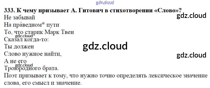 Ответ на задание 333 Учебник Русский язык за 5 (пятый) класс Баранов, Ладыженская, Тростенцова, Кулибаба, Григорян 2016, 2019 Часть 1, 2