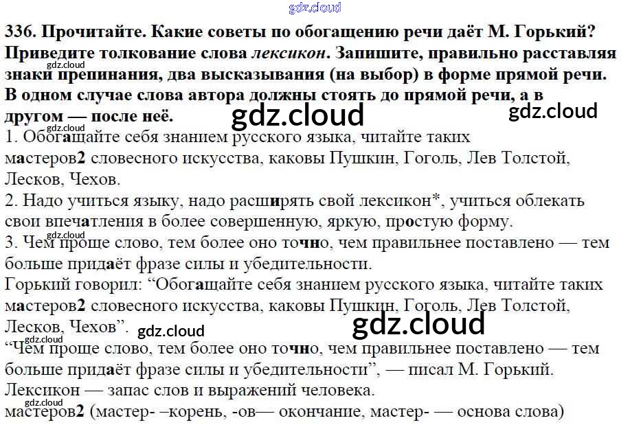 Ответ на задание 336 Учебник Русский язык за 5 (пятый) класс Баранов, Ладыженская, Тростенцова, Кулибаба, Григорян 2016, 2019 Часть 1, 2