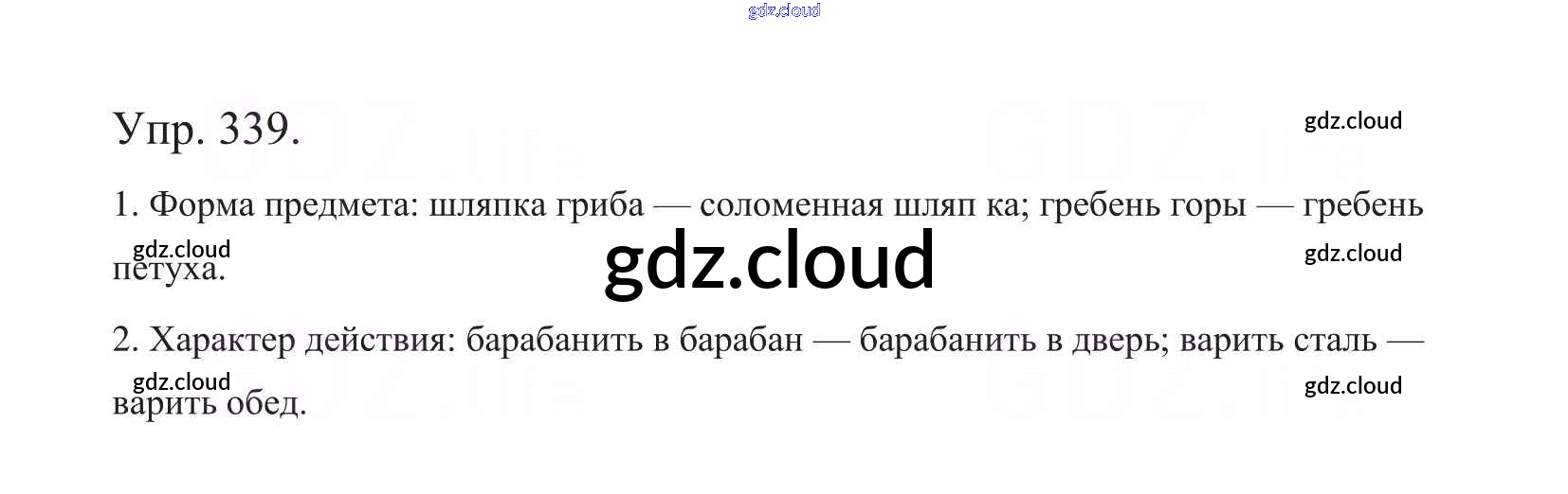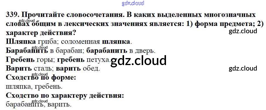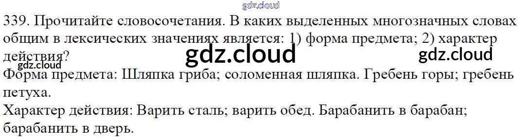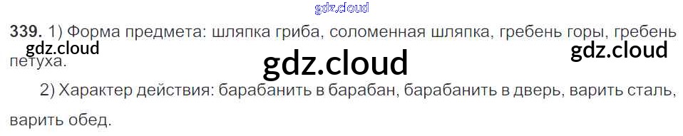 Ответ на задание 339 Учебник Русский язык за 5 (пятый) класс Баранов, Ладыженская, Тростенцова, Кулибаба, Григорян 2016, 2019 Часть 1, 2
