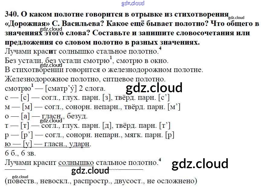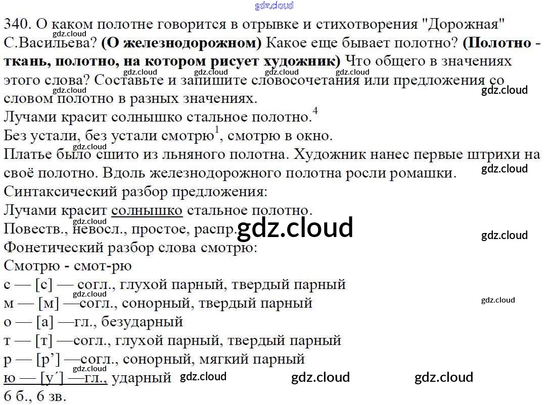 Ответ на задание 340 Учебник Русский язык за 5 (пятый) класс Баранов, Ладыженская, Тростенцова, Кулибаба, Григорян 2016, 2019 Часть 1, 2