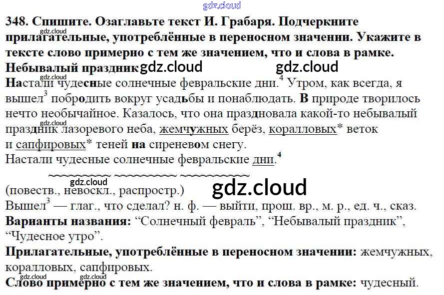 Ответ на задание 348 Учебник Русский язык за 5 (пятый) класс Баранов, Ладыженская, Тростенцова, Кулибаба, Григорян 2016, 2019 Часть 1, 2