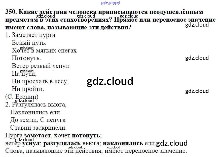 Ответ на задание 350 Учебник Русский язык за 5 (пятый) класс Баранов, Ладыженская, Тростенцова, Кулибаба, Григорян 2016, 2019 Часть 1, 2