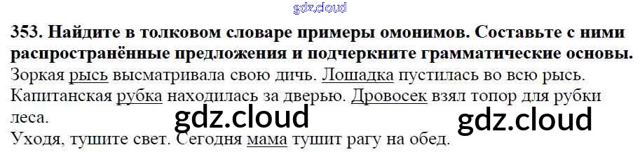 Ответ на задание 353 Учебник Русский язык за 5 (пятый) класс Баранов, Ладыженская, Тростенцова, Кулибаба, Григорян 2016, 2019 Часть 1, 2